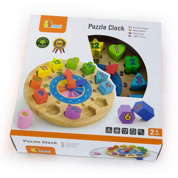 Viga Toys – Geometrinės formos galvosūkis – laikrodis, žaislas vaikams / kūdikiams