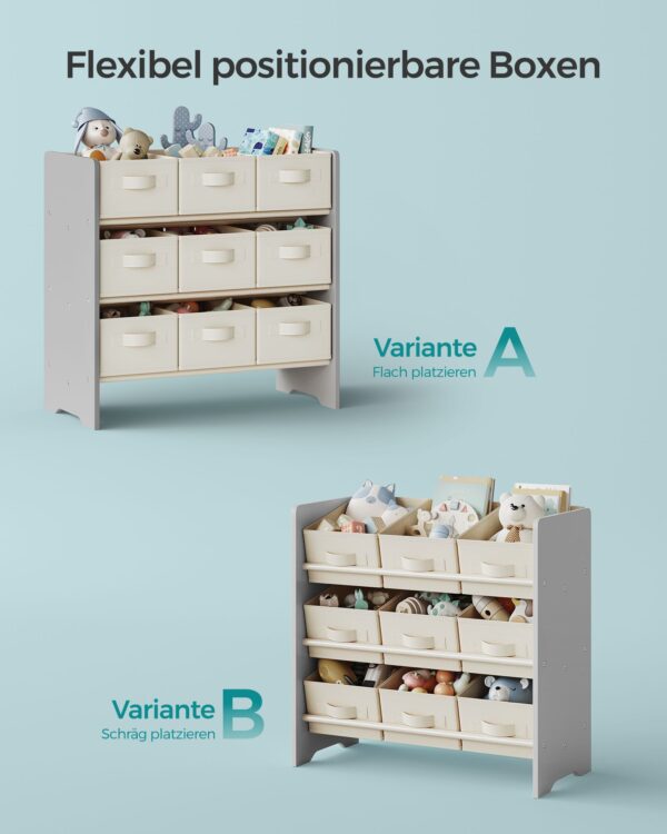 Maksimali statinė vienos dėžės apkrova yra 2 kg, o kiekvieno lygio – 6 kg. Bendra maksimali statinė apkrova siekia 18 kg, todėl galite saugiai laikyti įvairius daiktus.