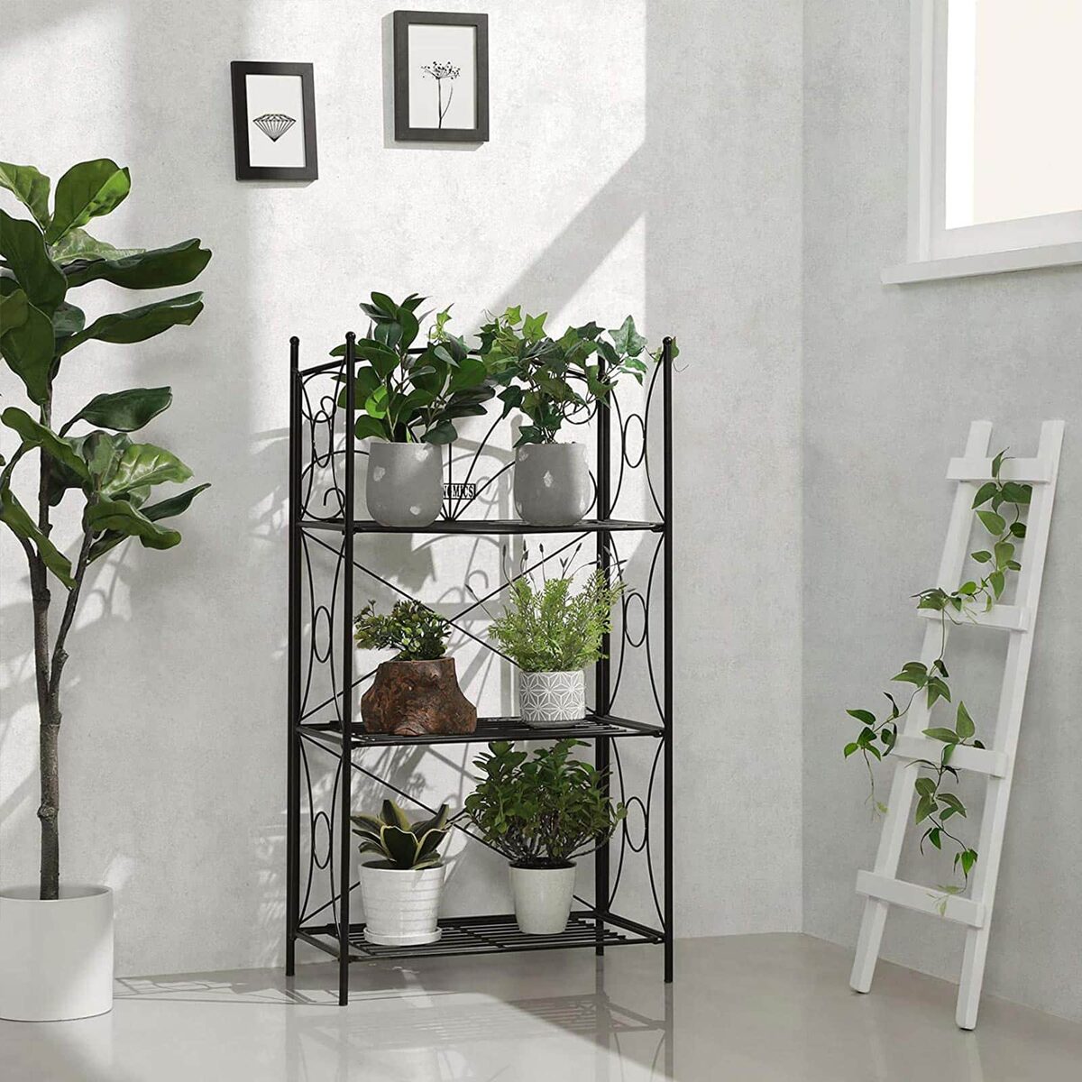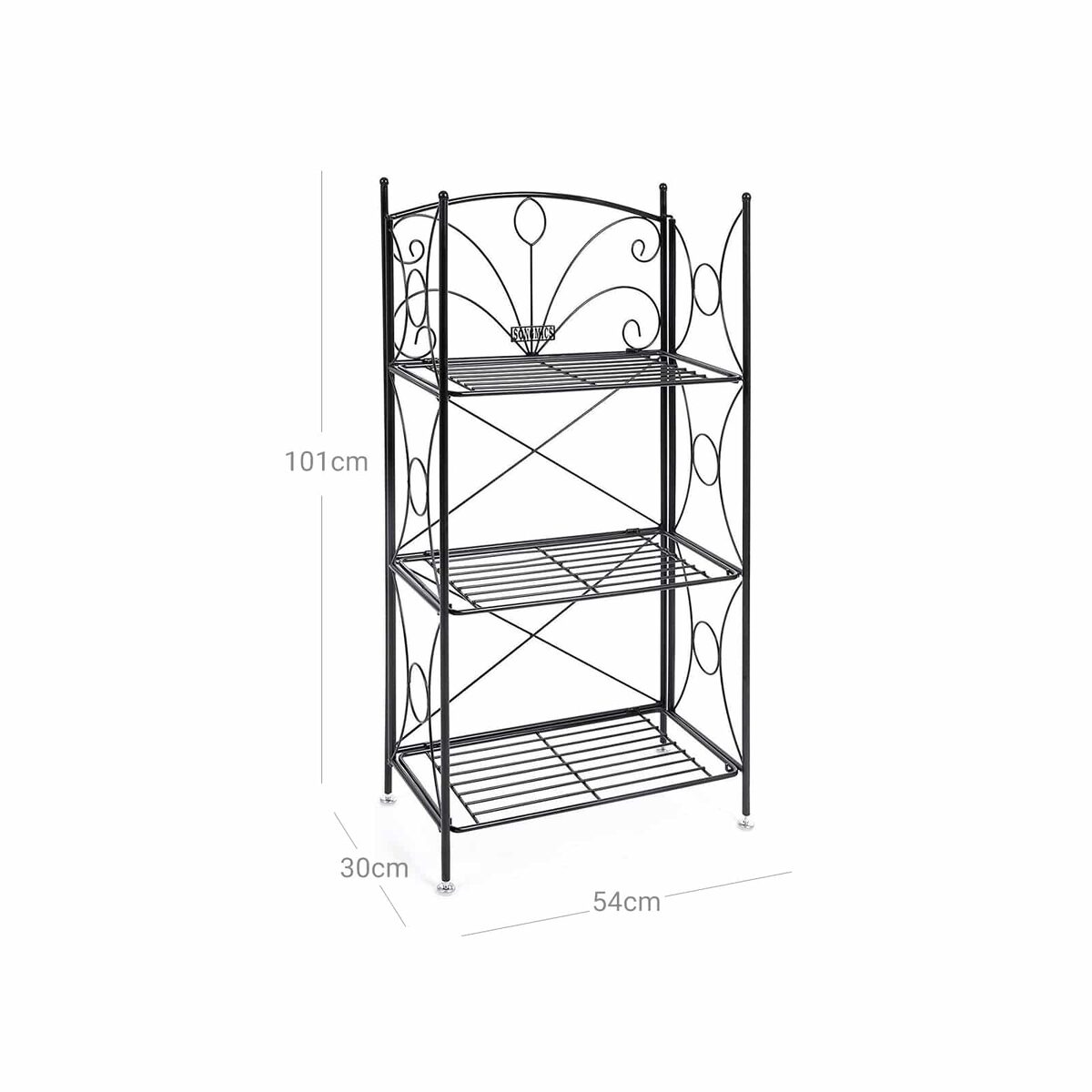 SONGMICS 3 pakopų sodo lentyna, pagaminta iš milteliniu būdu dengtos geležies, pasižymi puikiu atsparumu rūdims, todėl yra tinkama naudoti tiek viduje, tiek lauke. Nepaisant lengvos ir paprastos konstrukcijos, ši lentyna yra labai stabili. Skoningos juodos spalvos dizainas lengvai derinamas su kitais baldais ir tinka beveik bet kokioje aplinkoje. Tai puiki vieta augalams ir gėlėms namuose, sode, terasoje ar balkone. Įmantriai pagaminta geležinė lentyna su ūselių motyvais sukuria žavingą atmosferą jūsų namuose.