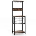 Virtuvės lentyna 54x37x156cm, rudos ir juodos spalvos, yra funkcionali saugojimo priemonė, skirta papildomai vietai virtuvės reikmenims ir vyno buteliams organizuoti. Ši lentyna pasižymi universalumu ir tvirta konstrukcija, idealiai tinkančia tiek namų barui, tiek virtuvės erdvės tvarkai palaikyti.