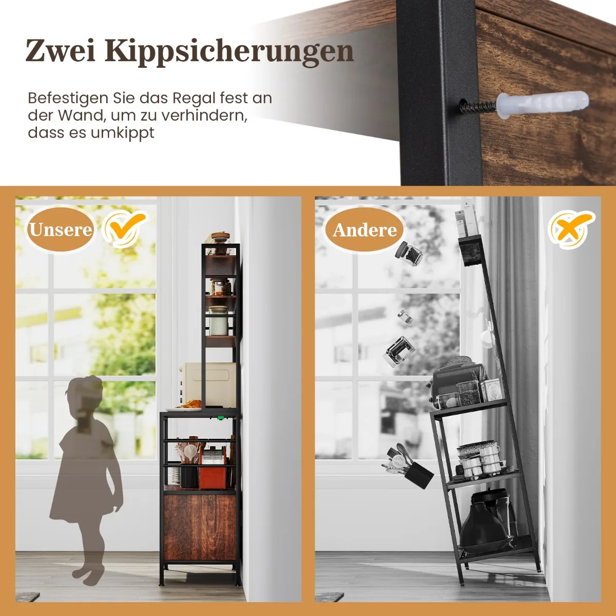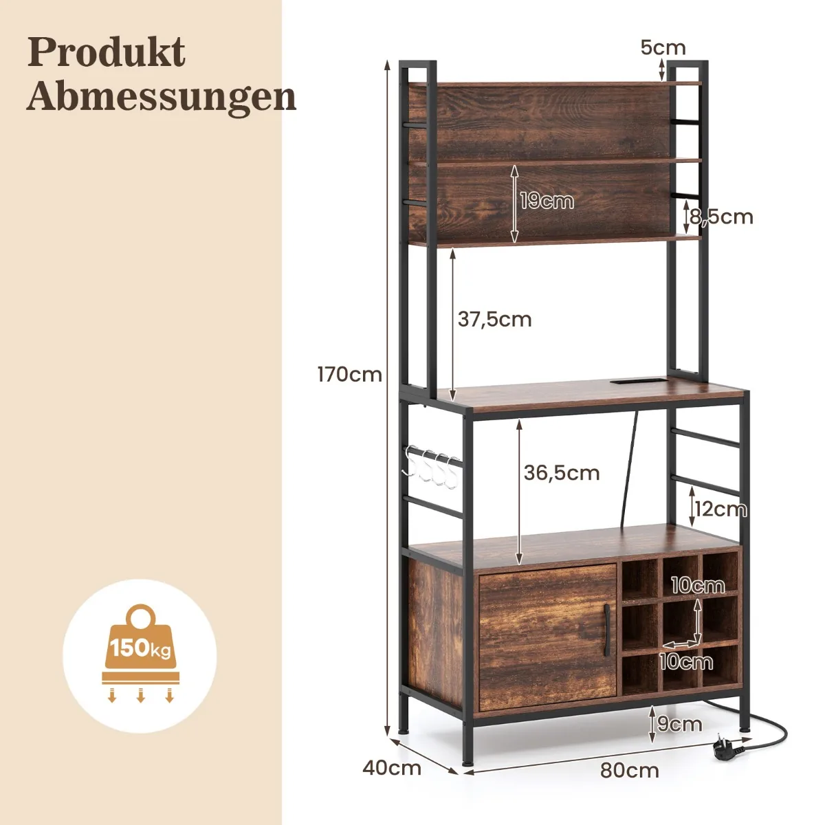 Virtuvės lentyna 80x40x170cm rudos ir juodos spalvos yra praktiškas sprendimas jūsų virtuvės erdvės organizavimui. Ši lentyna sukurta specialiai mikrobangų krosnelės, vyno butelių ir kitų virtuvės reikmenų laikymui bei įrenginių įkrovimui. Universalus dizainas tinka naudoti virtuvėje, valgomajame ar svetainėje.