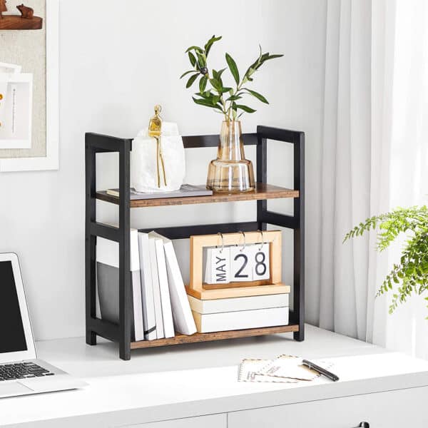 Biure: Padėkite šią lentyną ant biuro stalo, kad galėtumėte laikyti rašiklius, segtuvus, užrašus ir kitus biuro reikmenis bei sukurti tvarką ant stalo. Tvarkinga darbo vieta yra būtina norint būti produktyviam!