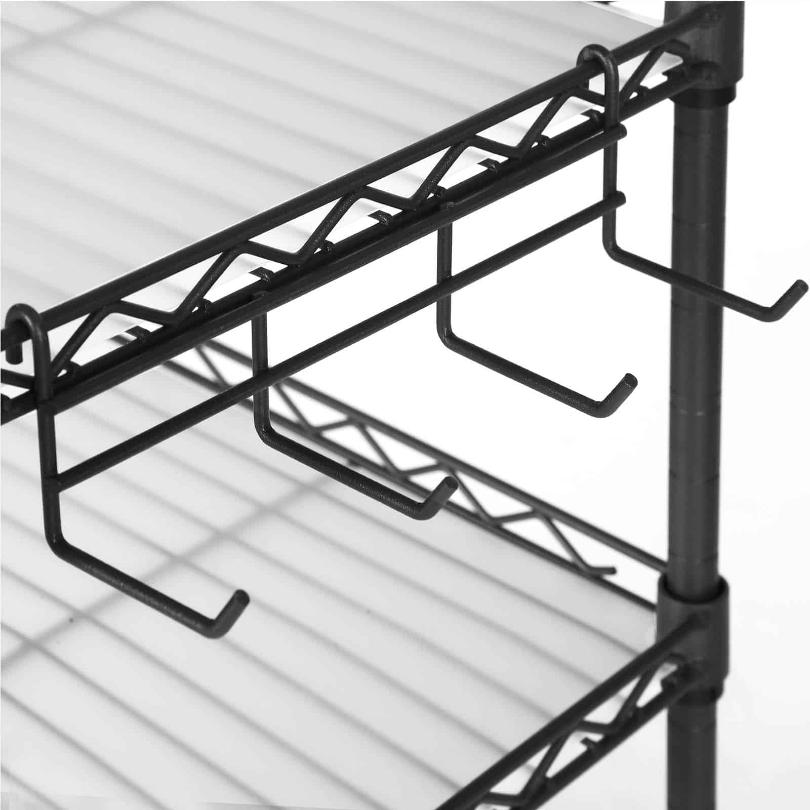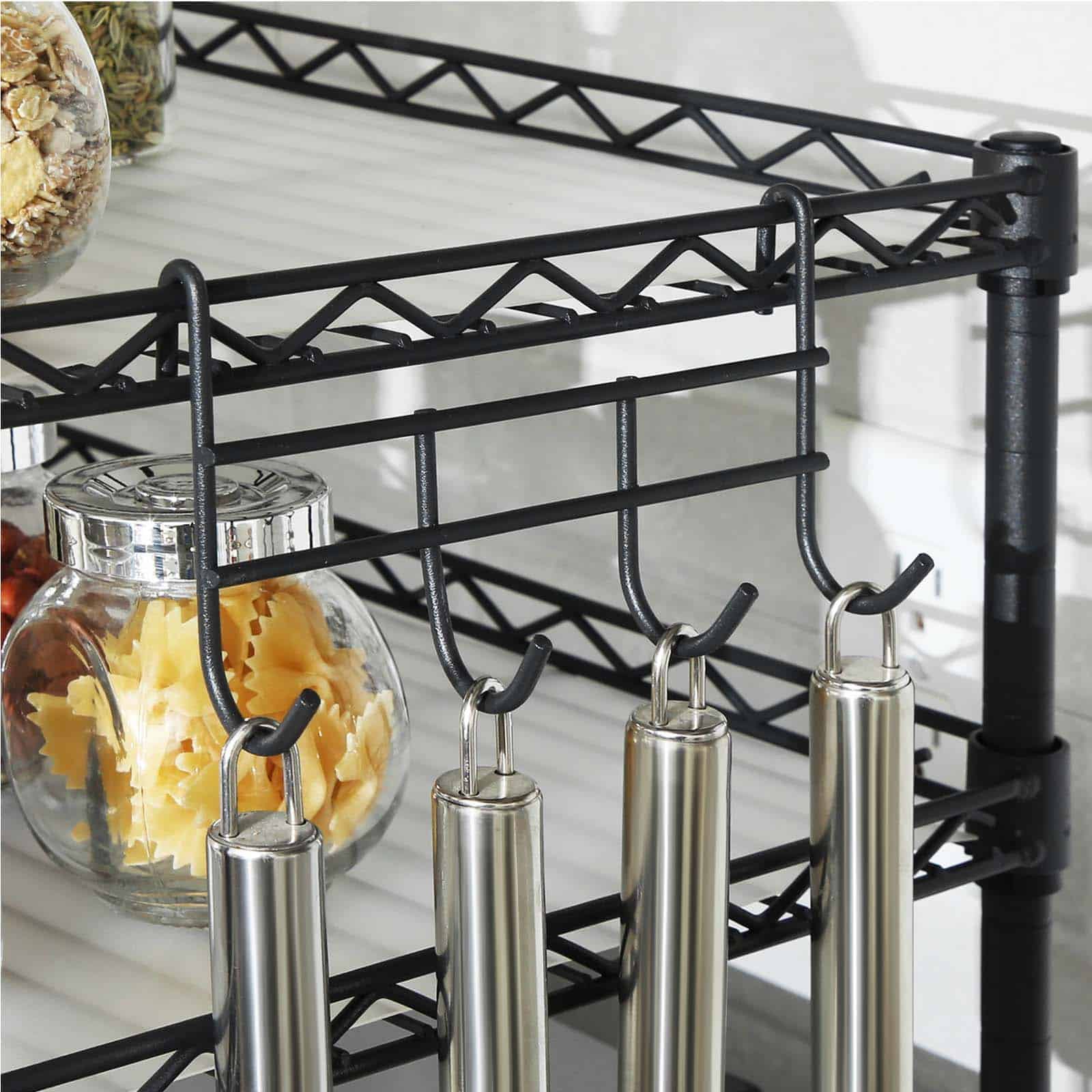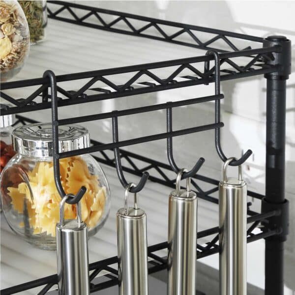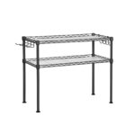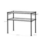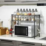 Tvarkykite savo virtuvę efektyviai su šia juodos spalvos virtuvės lentyna. Optimaliai išnaudokite vertikalią erdvę ir suteikite savo virtuvės stalui tvarkos bei stiliaus. Ši mikrobangų krosnelės lentyna iš SONGMICS turi 2 reguliuojamo aukščio lentynas, kurios puikiai tinka prieskonių buteliams laikyti, o mikrobangų krosnelę galima stabiliai pastatyti apatinėje dalyje. Ant kabliukų patogiai pakabinsite menteles ir keptuves, todėl jūsų virtuvė visada bus tvarkinga.