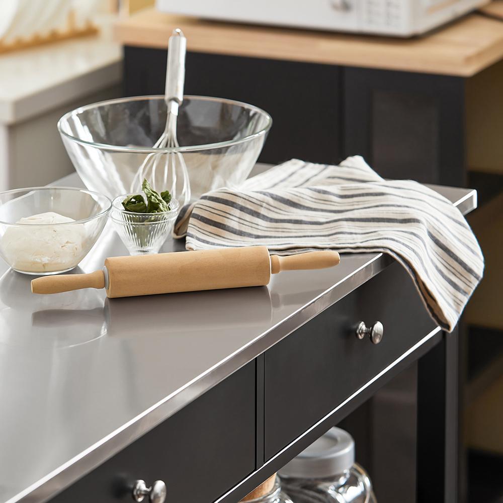 Virtuvės sala yra aprūpinta 4 lygiais universaliais ratukais, kurie leidžia lengvai perkelti ją į bet kurią vietą. Be to, didelė stalviršio plokštė suteikia erdvų gaminimo plotą, kuris palengvina maisto ruošimą.