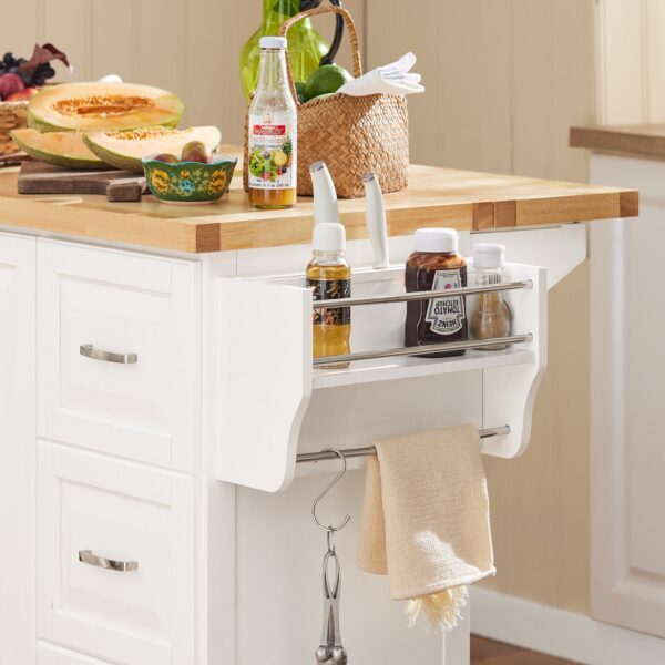 Ši virtuvės sala yra itin praktiška, jei turite ribotą erdvę, nes jos dydį galima lengvai pritaikyti pagal poreikius. Tvirta konstrukcija ir keturi ratukai leidžia lengvai perkelti salą į norimą vietą ir naudoti ją ten, kur reikia.