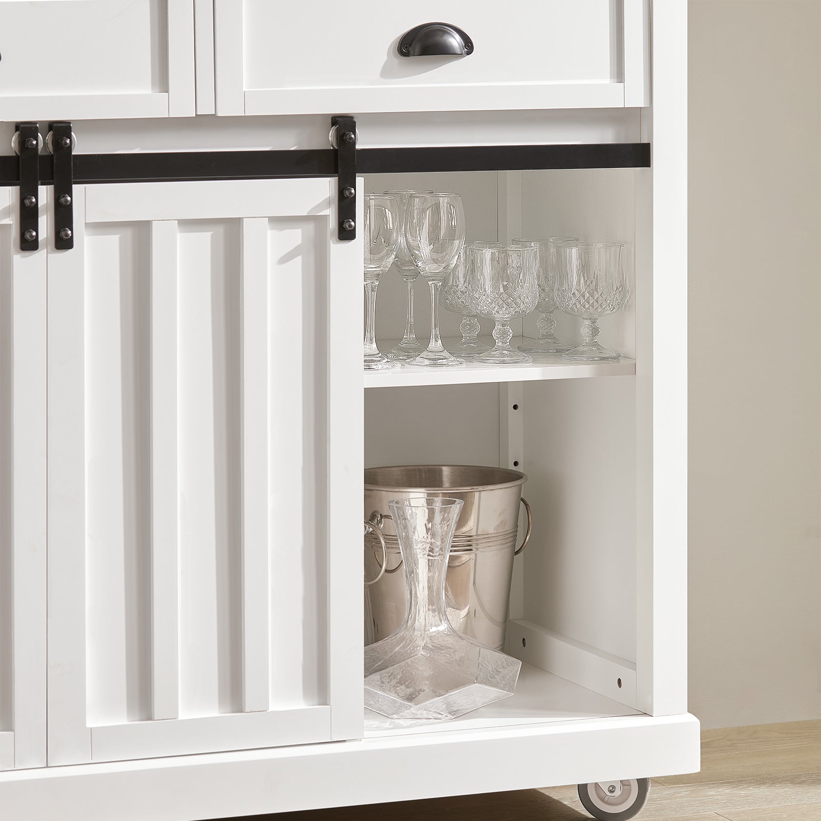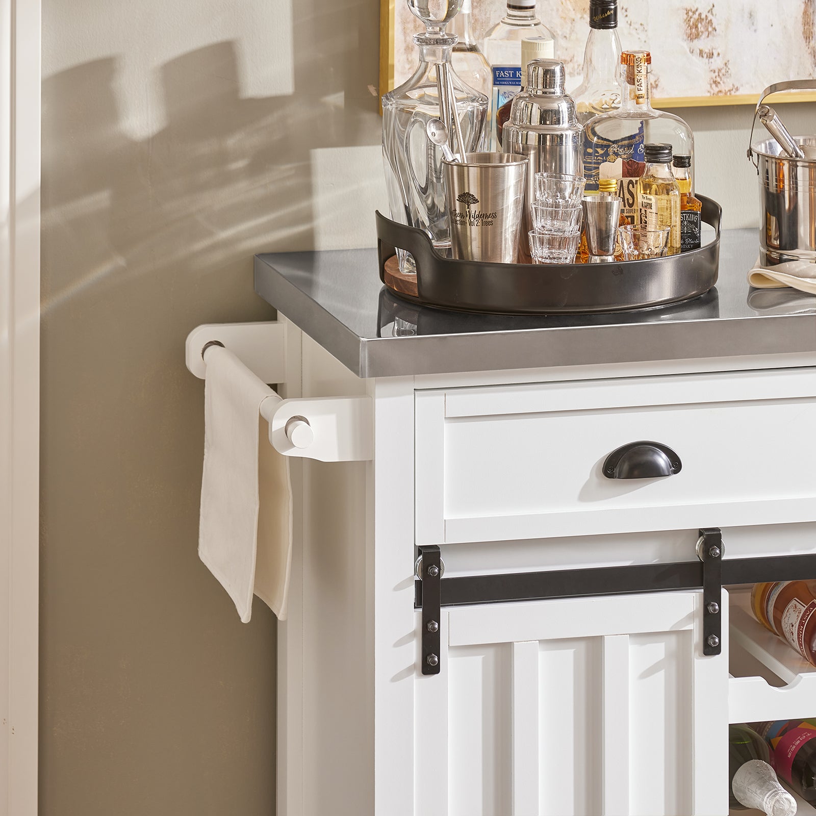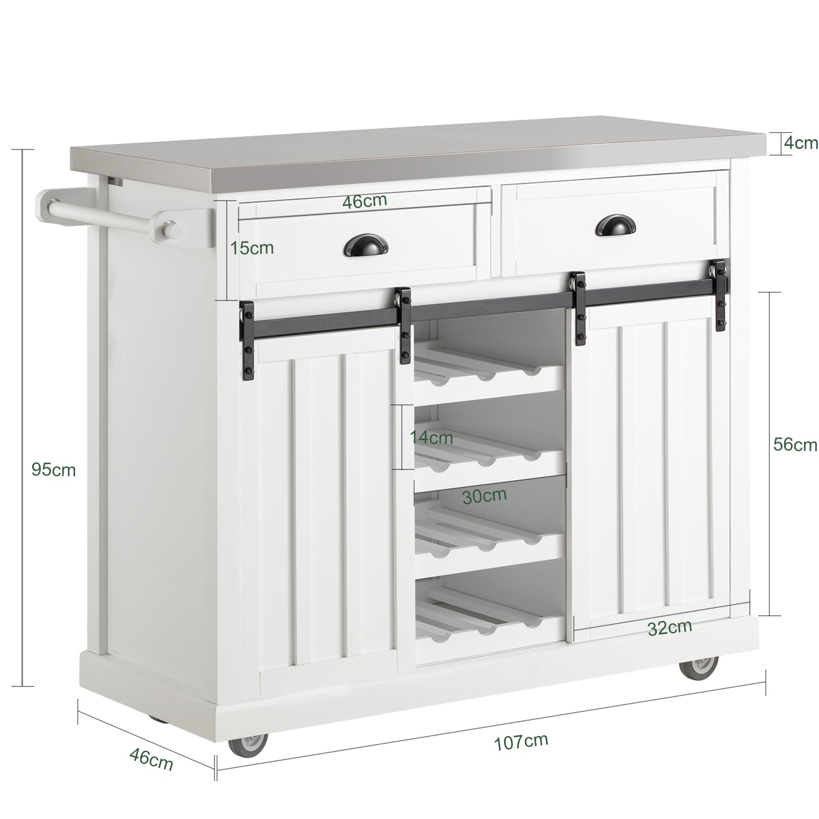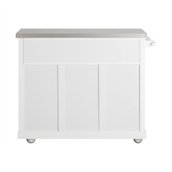 Pagaminta iš aukštos kokybės medžio drožlių plokštės ir medienos plaušų plokštės, su nerūdijančio plieno stalviršiu, ši virtuvės sala yra ne tik tvirta, bet ir lengvai valoma dėl lygaus, neporėto ir kieto paviršiaus.