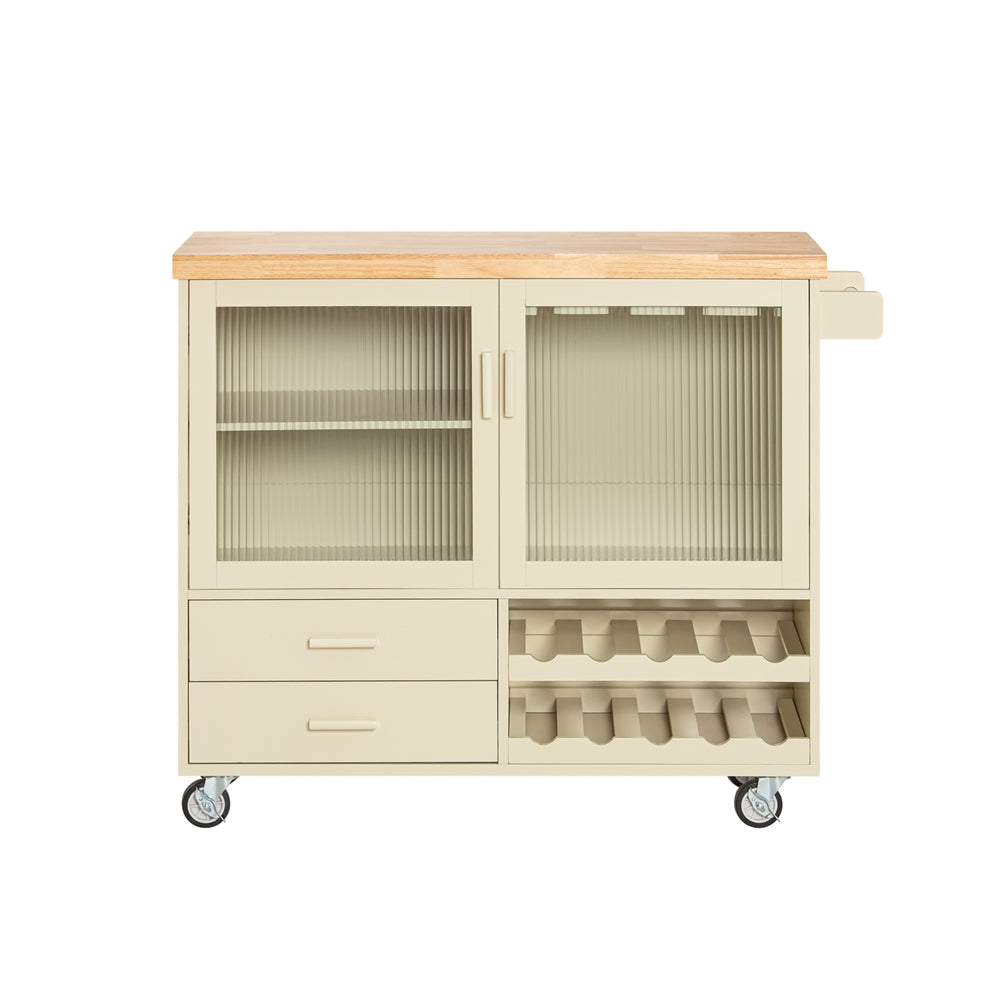 Po kruopštaus apdirbimo, paviršius yra lygus ir be aštrių briaunų. Virtuvės sala turi 2 stalčius, 2 lentynas ir vyno lentyną, todėl ji idealiai tinka daržovių, vaisių, vyno butelių ar kitų virtuvės reikmenų laikymui, atitinkant įvairius saugojimo poreikius.