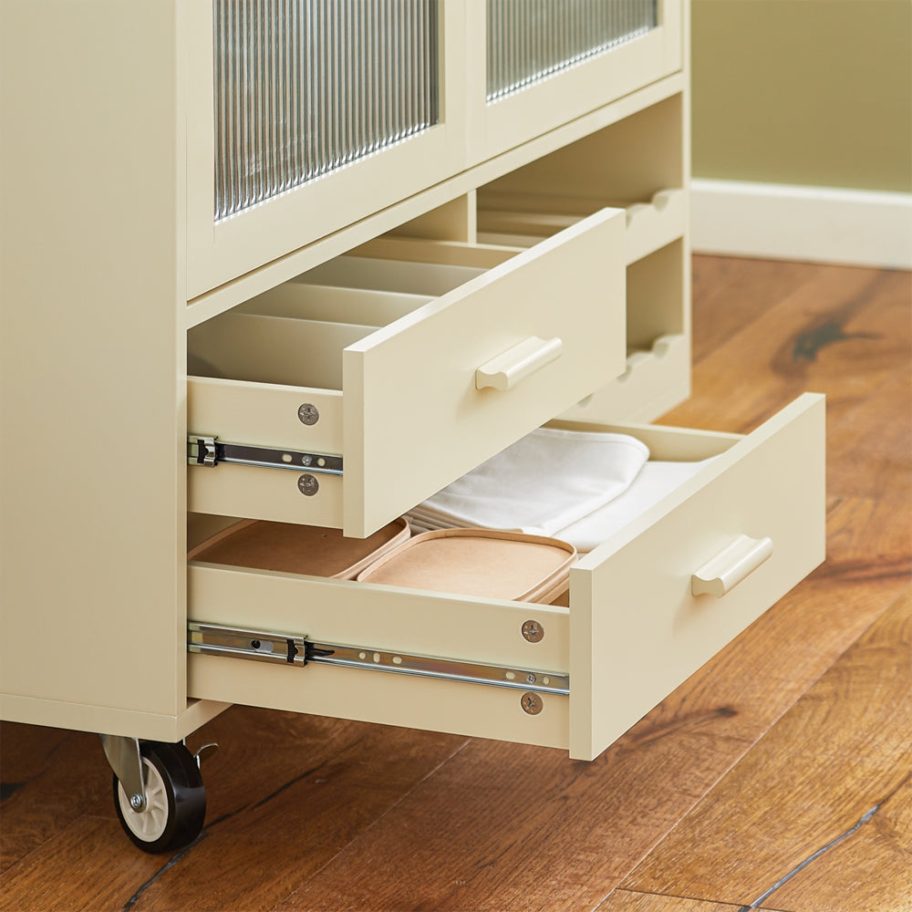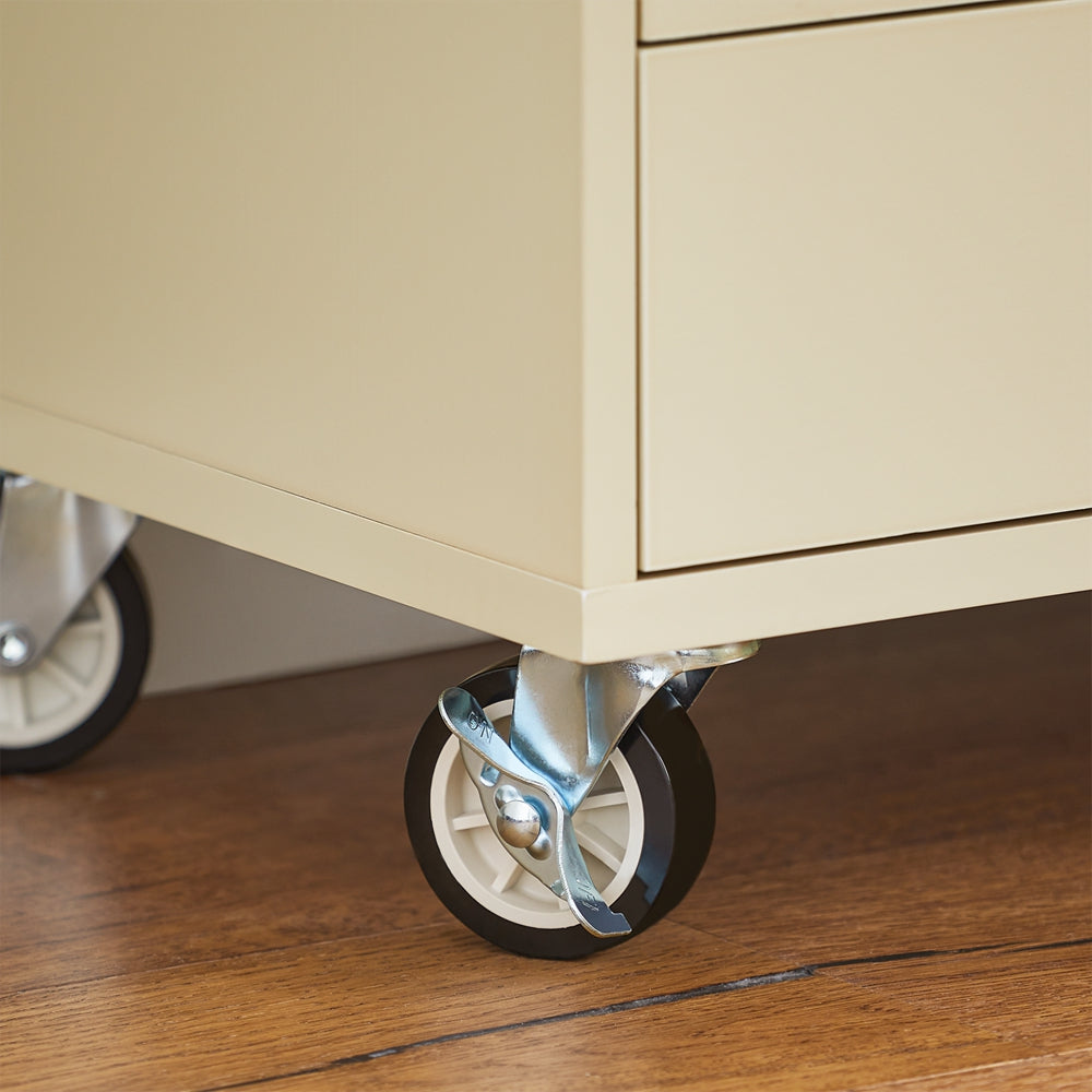 4 universalūs ratukai leidžia lengvai perkelti šią virtuvės salą. 2 iš jų turi stabdžius, kurie gali būti naudojami, kai reikia užfiksuoti salą vietoje. Rankšluosčių laikiklis gali būti naudojamas kaip stumimo rankena, palengvinanti pervežimą.