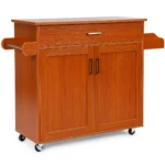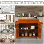 Virtuvės sala ant ratukų 116x40x85cm, rudos spalvos, yra praktiškas sprendimas papildomai vietai virtuvėje. Šis virtuvinis vežimėlis suteikia patogią erdvę maisto ruošimui ir efektyviam indų, prieskonių bei reikmenų laikymui. Mobilumas ir funkcionalumas leidžia lengvai pritaikyti jį įvairiems poreikiams.