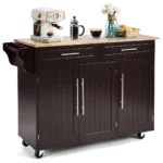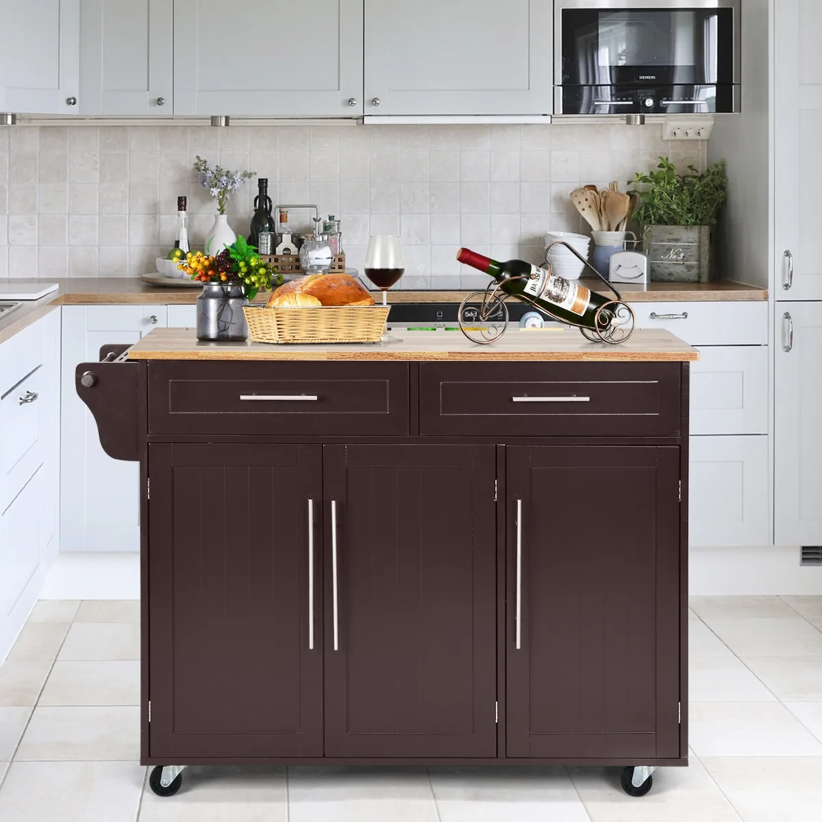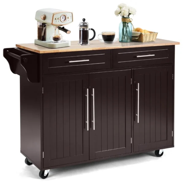 Virtuvės sala ant ratukų 121,5×45,5×92,5 cm, tamsiai rudos ir šviesiai rudos spalvų, suteikia papildomą vietą maisto ruošimui ir saugojimui jūsų virtuvėje ar valgomajame. Mobilus dizainas su stabiliais ratukais leidžia lengvai judinti salą pagal poreikį, tuo pačiu užtikrinant patogumą ir tvarką.