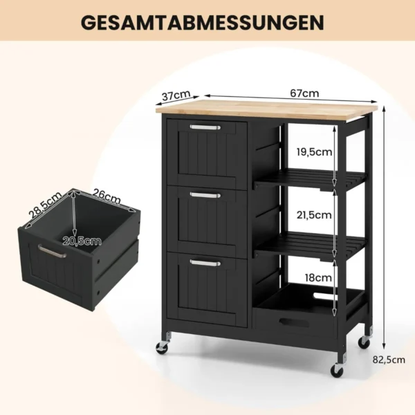 Virtuvės sala ant ratukų 67x37x82,5cm., juodos/šviesiai rudos spalvos