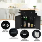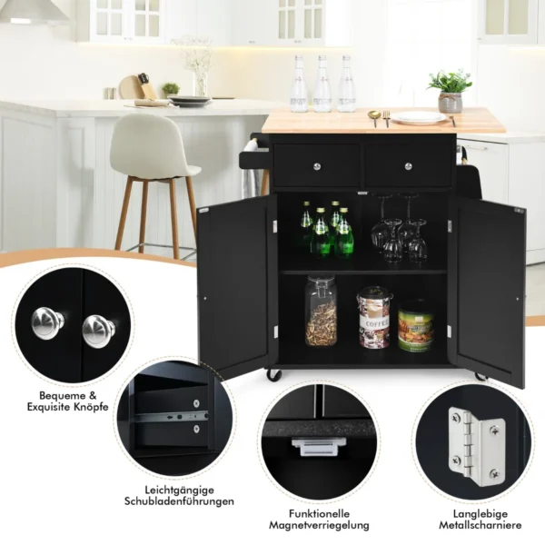 Virtuvės sala ant ratukų 88x45x89,5cm., juodos/šviesiai rudos spalvos