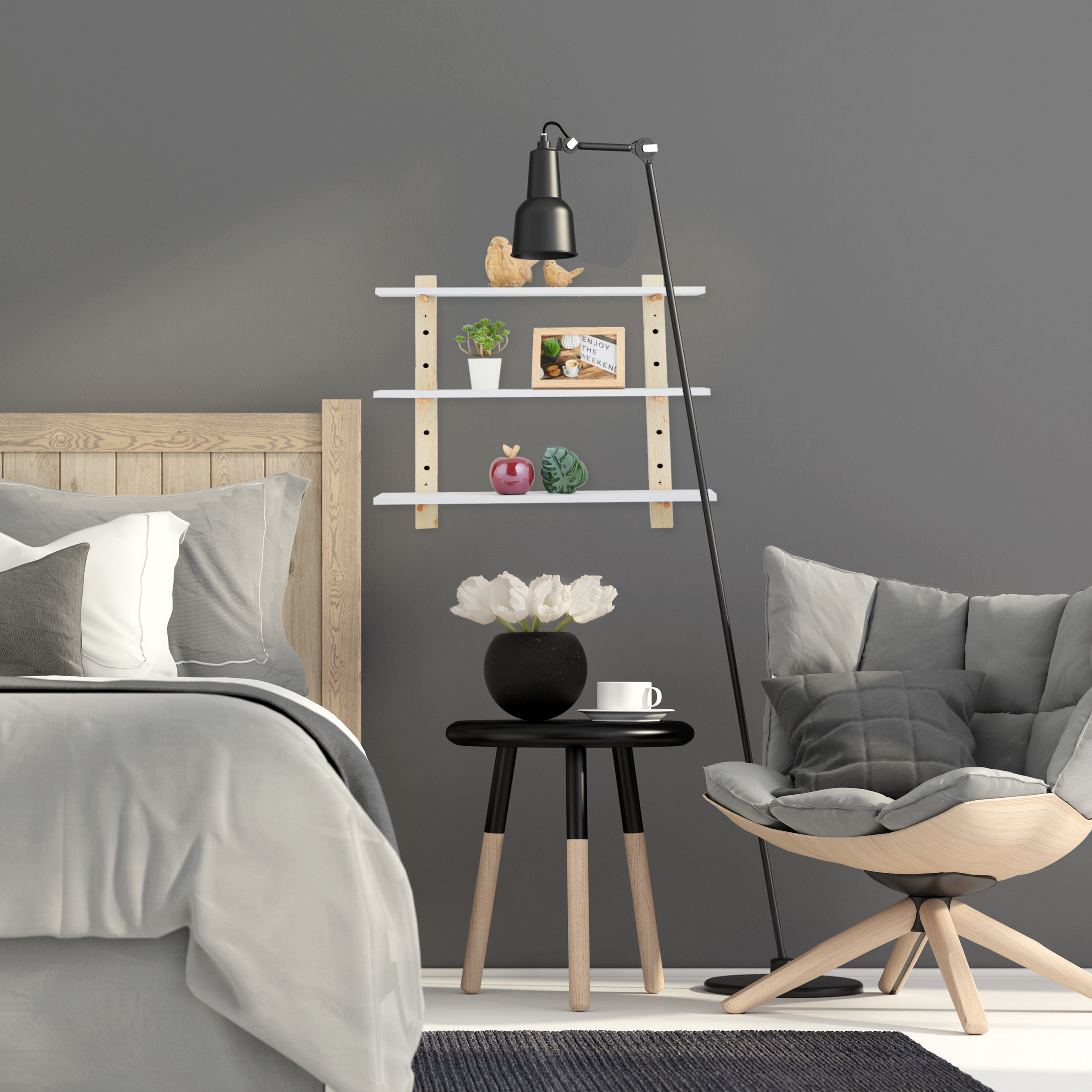 Trijų lentynų dizainas: Puikiai tinka smulkiems augalams, paveikslėliams ir dekoratyvinėms figūrėlėms.