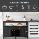 Virtuvės spintelė 117×40,5×85,5 cm juodos spalvos suteikia erdvų ir patogų sprendimą įvairiems virtuvės reikmenims, indams ir buteliams laikyti. Pagaminta iš MDF medžiagos, spintelė yra patvari ir lengvai prižiūrima, todėl puikiai tinka kasdieniam naudojimui.