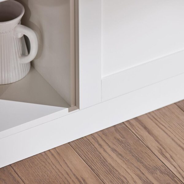 Ši virtuvės spintelė 80x40x125 cm, baltos/sidabrinės spalvos, yra praktiškas sprendimas jūsų virtuvės ar valgomojo erdvei. Aukštos lentynų kraštinės padeda išlaikyti tvarką ir atlaisvina stalviršio plotą.
