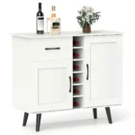 Virtuvės spintelė 90x40x79cm, baltos ir juodos spalvos, suteikia funkcionalią ir patogią vietą daiktų bei gėrimų laikymui. Dėka erdvaus stalviršio, reguliuojamų lentynų ir vyno lentynos, ši spintelė pritaikyta kasdieniams poreikiams jūsų virtuvėje ar svetainėje.