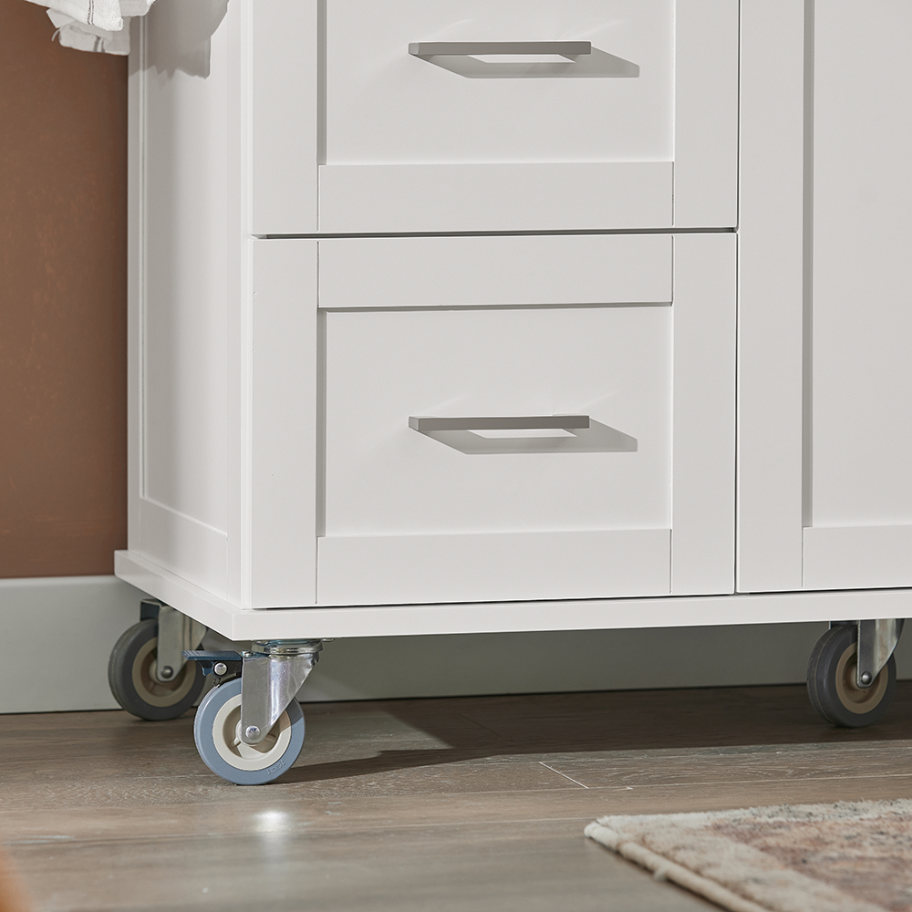 Pagamintas iš aukštos kokybės MDF plokščių ir medienos, šis virtuvės vežimėlis pasižymi puikia stabilumu ir ilgaamžiškumu. Tvirtos metalinės vyriai sustiprina jungtis, užtikrindami aukštą stabilumą. Be to, paviršius yra lygus ir atsparus vandeniui, todėl jį lengva valyti.