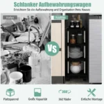 Virtuvės vežimėlis 40x21x59,5 cm juodos ir pilkos spalvos – praktiškas sprendimas namų saugojimui ir organizavimui. Šis kompaktiškas vežimėlis puikiai tinka laikyti įvairius daiktus virtuvėje, vonios kambaryje ar kitose patalpose, užtikrinant tvarką ir patogų pasiekimą.