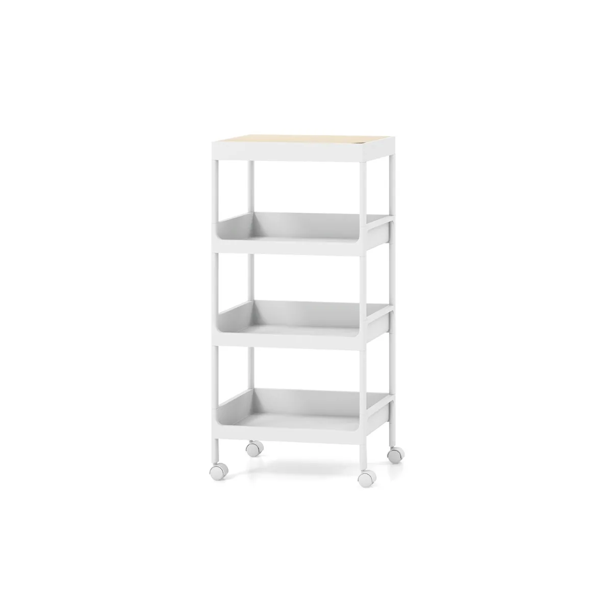 Virtuvės vežimėlis 40x26x84 cm, baltos spalvos, yra praktiškas sprendimas maisto ir namų apyvokos daiktų laikymui. Kompaktiško dydžio ir tvirtos konstrukcijos vežimėlis užtikrina patogų judėjimą bei papildomą saugojimo vietą mažose erdvėse.
