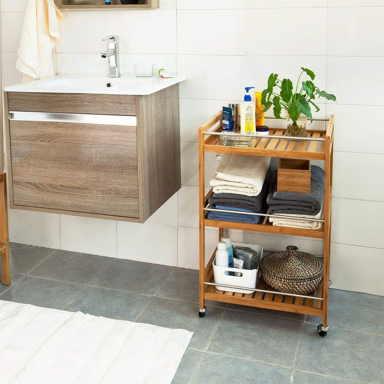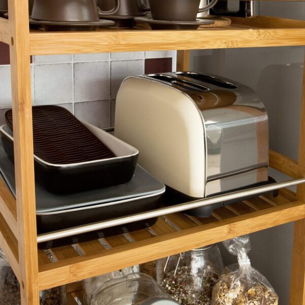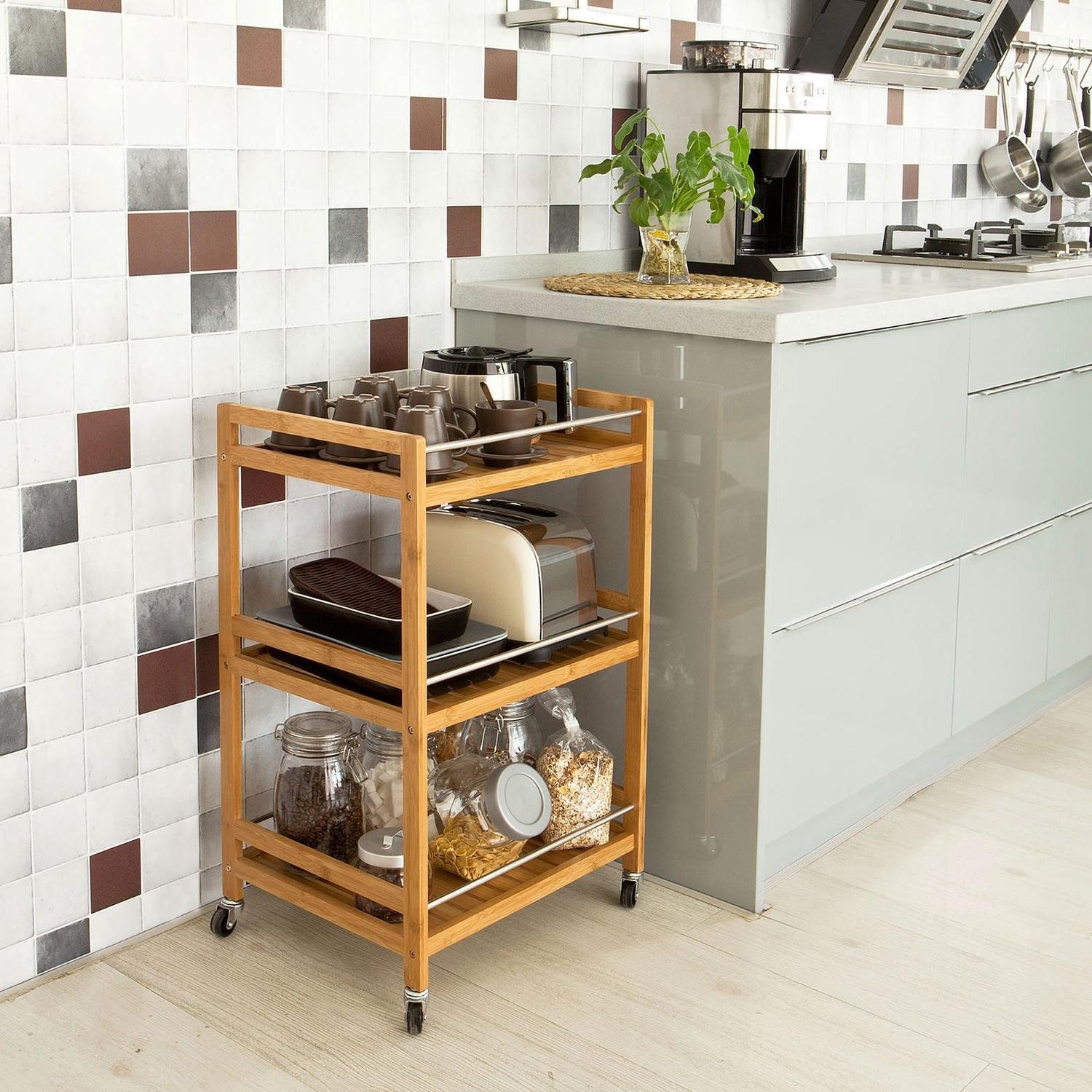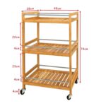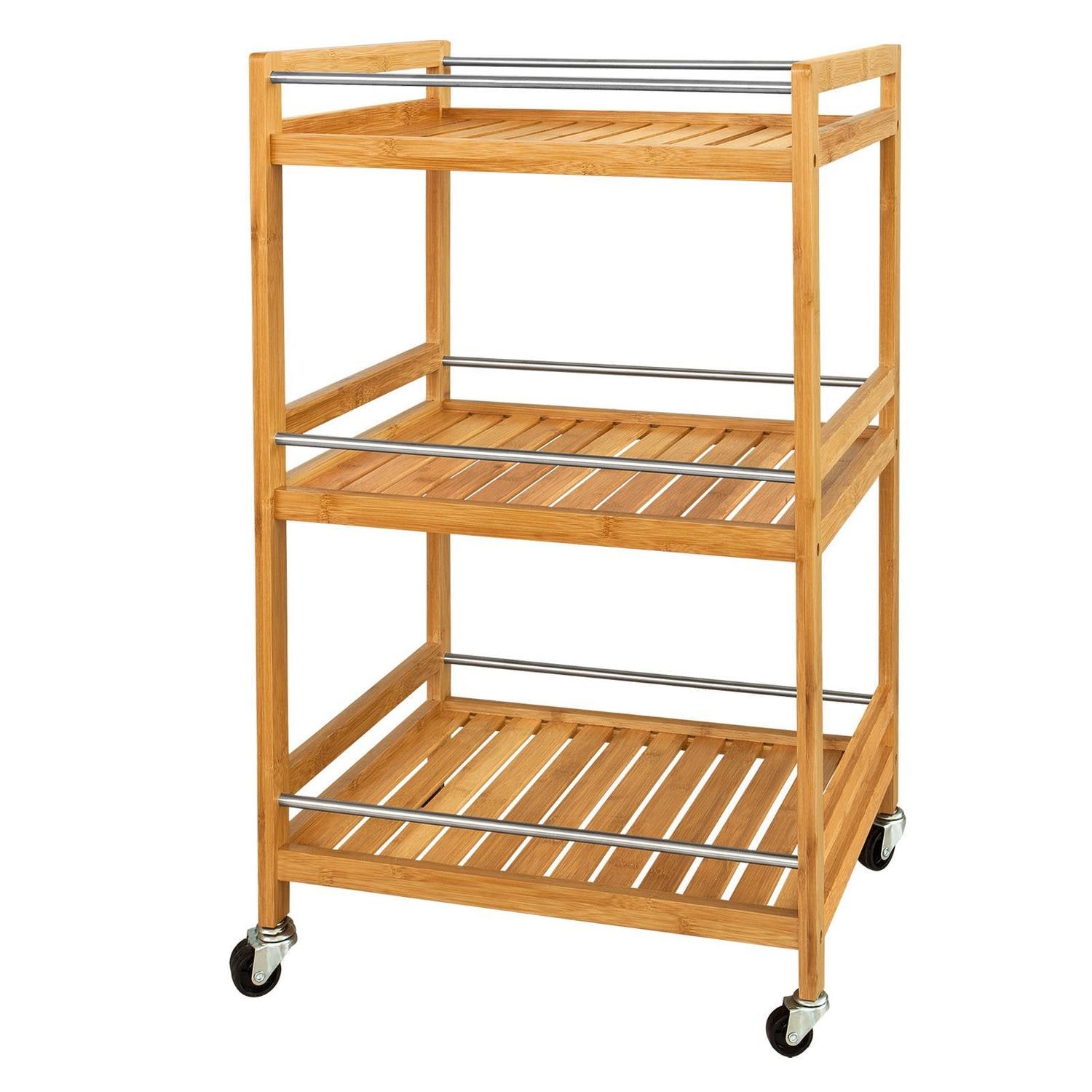 Šis virtuvės vežimėlis 46x76x38 cm, šviesiai rudos/sidabrinės spalvos, yra puikus sprendimas jūsų virtuvei, vonios kambariui ar bet kuriai kitai vietai, kurioje reikia papildomos laikymo vietos. Jo tvirta konstrukcija ir keturi ratukai leidžia lengvai perkelti vežimėlį ten, kur jums reikia.