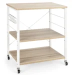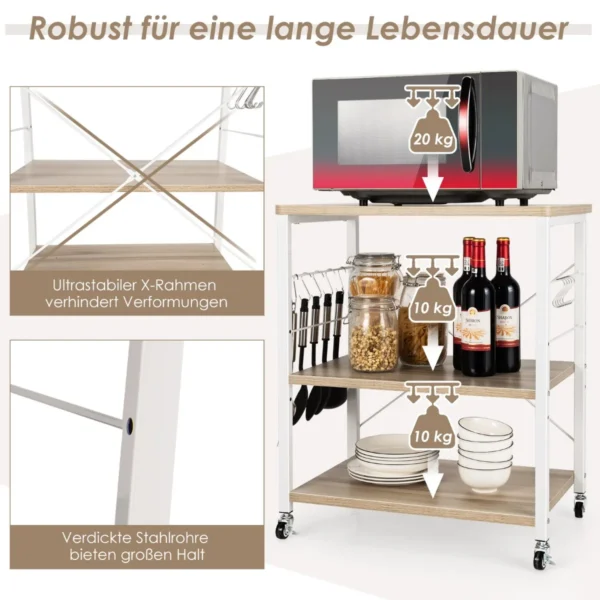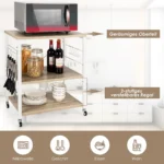 Virtuvės vežimėlis 60x40x73,5 cm yra praktiškas sprendimas indams, virtuvės reikmenims ir smulkiems aparatams laikyti. Baltos ir šviesiai rudos spalvos vežimėlis lengvai pritaikomas įvairiuose interjeruose, užtikrindamas patogų daiktų organizavimą ir mobilumą.
