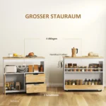- ✔ Vežimėlio du stalčiai ir viendurė spintelė su ratukais suteikia galimybę laikyti šoninius virtuvės reikmenis. vežimėlis su ratukais, kad būtų lengva pasiekti Daiktai
