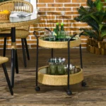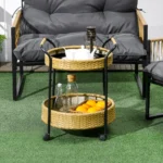 Ar planuojate socialinį susirinkimą sode? Padarykite savo svetingumą mobilų su šiuo elegantišku, apvaliu Outsunny vežimėliu. Dviejų lygių jame yra daug vietos maistui, gėrimams, rankšluosčiams ir žaidimams – puikiai tiks bet kokio tipo šventėms. Dėl keturių sklandžiai einančių ratų vežimėlį lengva perkelti, o prireikus galima lengvai pritvirtinti, kad nenuriedėtų. Greitai nebenorėsite likti be šio mažojo pagalbininko!