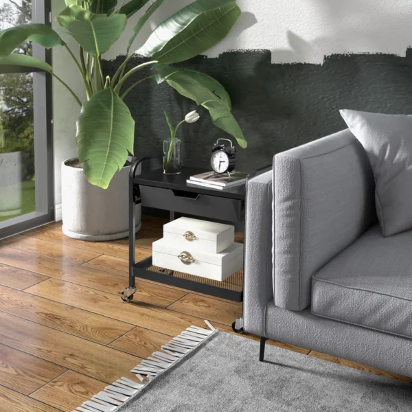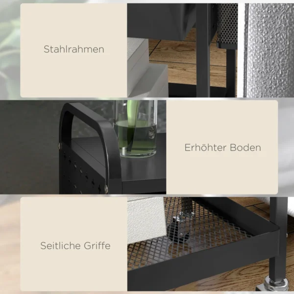 Virtuvės vežimėlis Homcom 61×32,6×58,5cm., juodos spalvos
