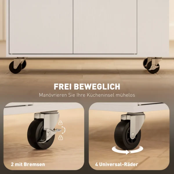 Atraskite HOMCOM virtuvinio vežimėlio eleganciją ir universalumą. Dėl erdvaus darbo paviršiaus maisto ruošimas yra vienas malonumas. Praktiškas stalčius ir erdvus dviejų dalių spintelės skyrius su reguliuojama lentyna suteikia papildomos vietos virtuvės reikmenims laikyti. Dėl trijų pakopų prieskonių kabyklos ir šoninio rankšluosčių laikiklio šis virtuvės vežimėlis yra lankstus, kompaktiškas pagalbininkas bet kokiai progai.