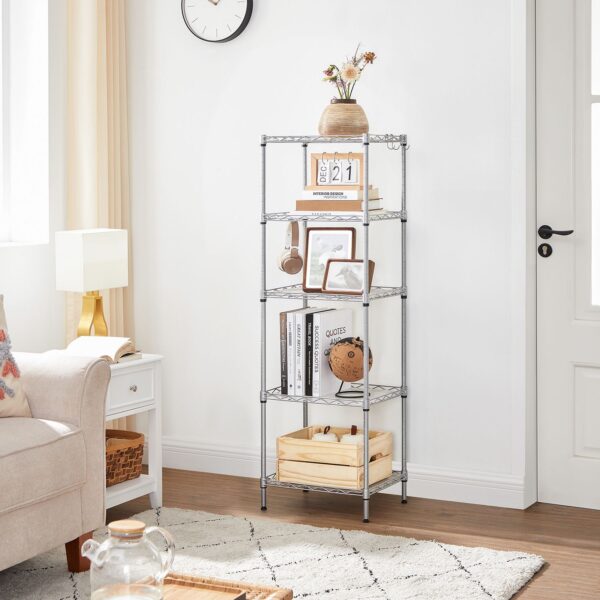 Virtuvėje? HEROJUS: Jūsų stalviršis pilnas puodų, prieskonių, dubenėlių ir kitų maisto ruošimo reikmenų, o jūs turite mažai vietos pasigaminti savo didelę vakarienę? Ši aukšta lentyna padės išbristi iš bėdų. Išdėstykite viską 5 lygiuose, nuvalykite stalviršį ir pasiruoškite nustebinti savo svečius!