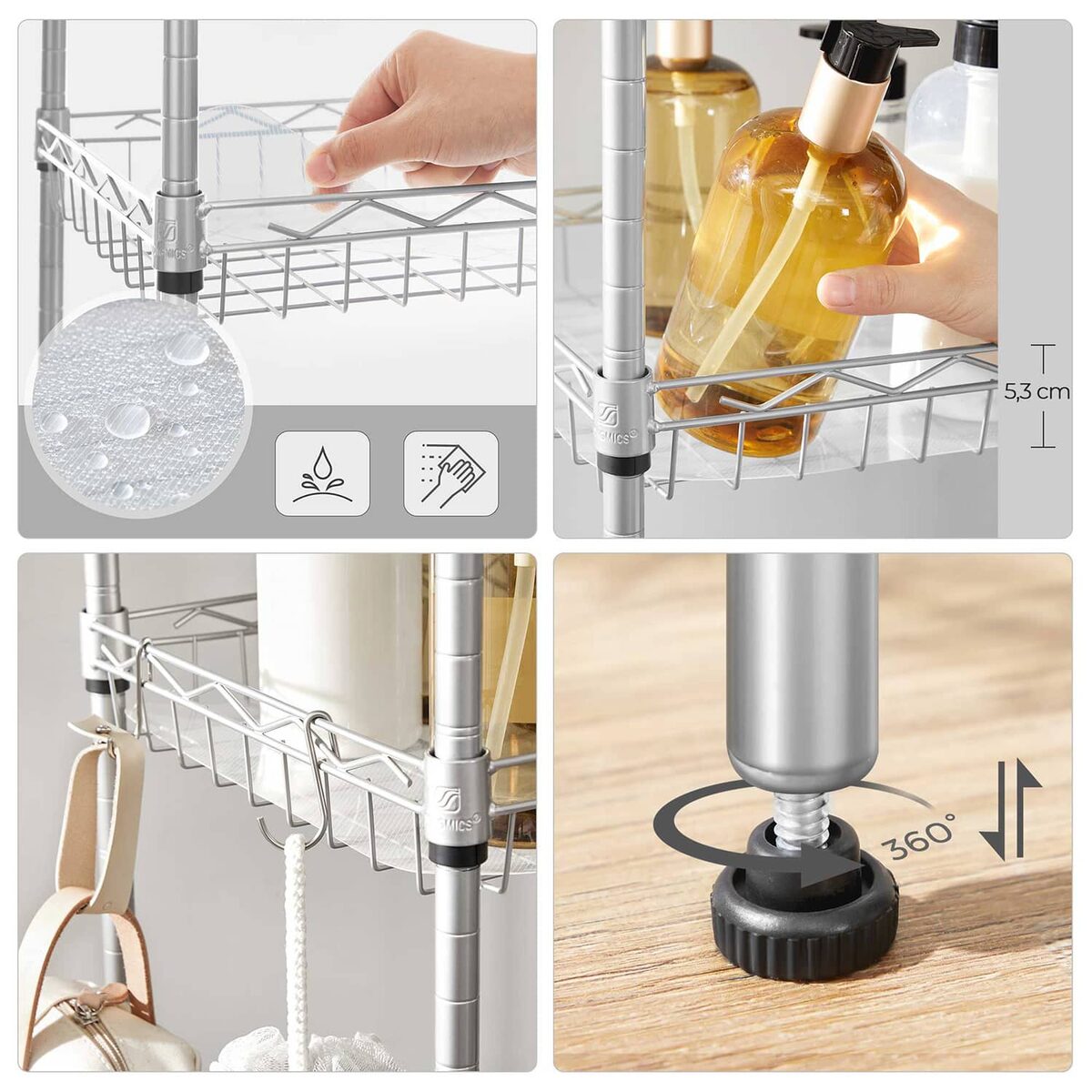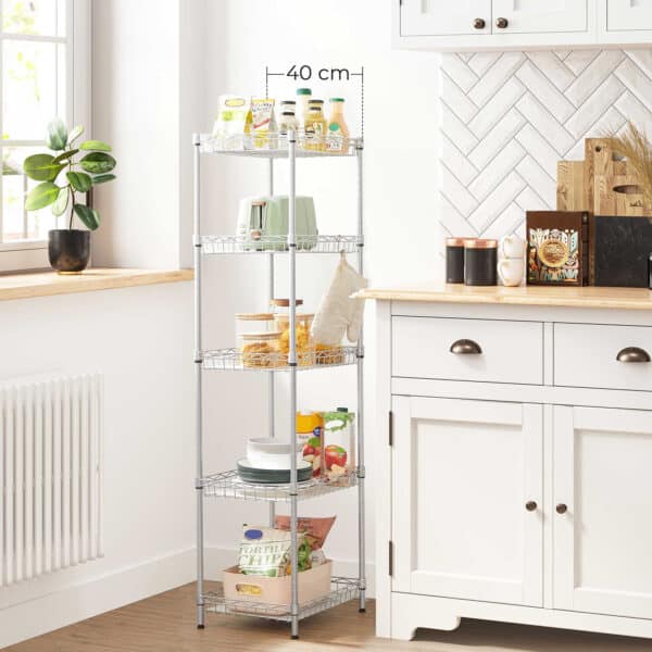 Virtuvėje? HEROJUS: Jūsų stalviršis pilnas puodų, prieskonių, dubenėlių ir kitų maisto ruošimo reikmenų, o jūs turite mažai vietos pasigaminti savo didelę vakarienę? Ši aukšta lentyna padės išbristi iš bėdų. Išdėstykite viską 5 lygiuose, nuvalykite stalviršį ir pasiruoškite nustebinti savo svečius!