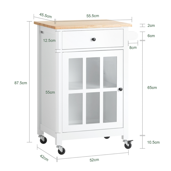 Virtuvinė spinta ant ratų 55,5x45,5x87,5cm., baltos/šviesiai rudos spalvos FKW98-WN