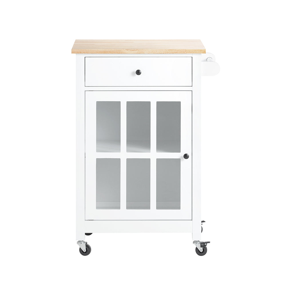 Virtuvinė spinta ant ratų 55,5×45,5×87,5cm., baltos/šviesiai rudos spalvos FKW98-WN