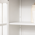 Stiklinės durys užtikrina, kad jūsų vertingiausi daiktai būtų apsaugoti nuo dulkių, tačiau vis tiek matomi. Stalviršis pagamintas iš tvirto hevea fanerio, kuris yra natūrali ir ilgaamžė medžiaga, galinti būti šlifuojama ir apdorojama pagal poreikį.