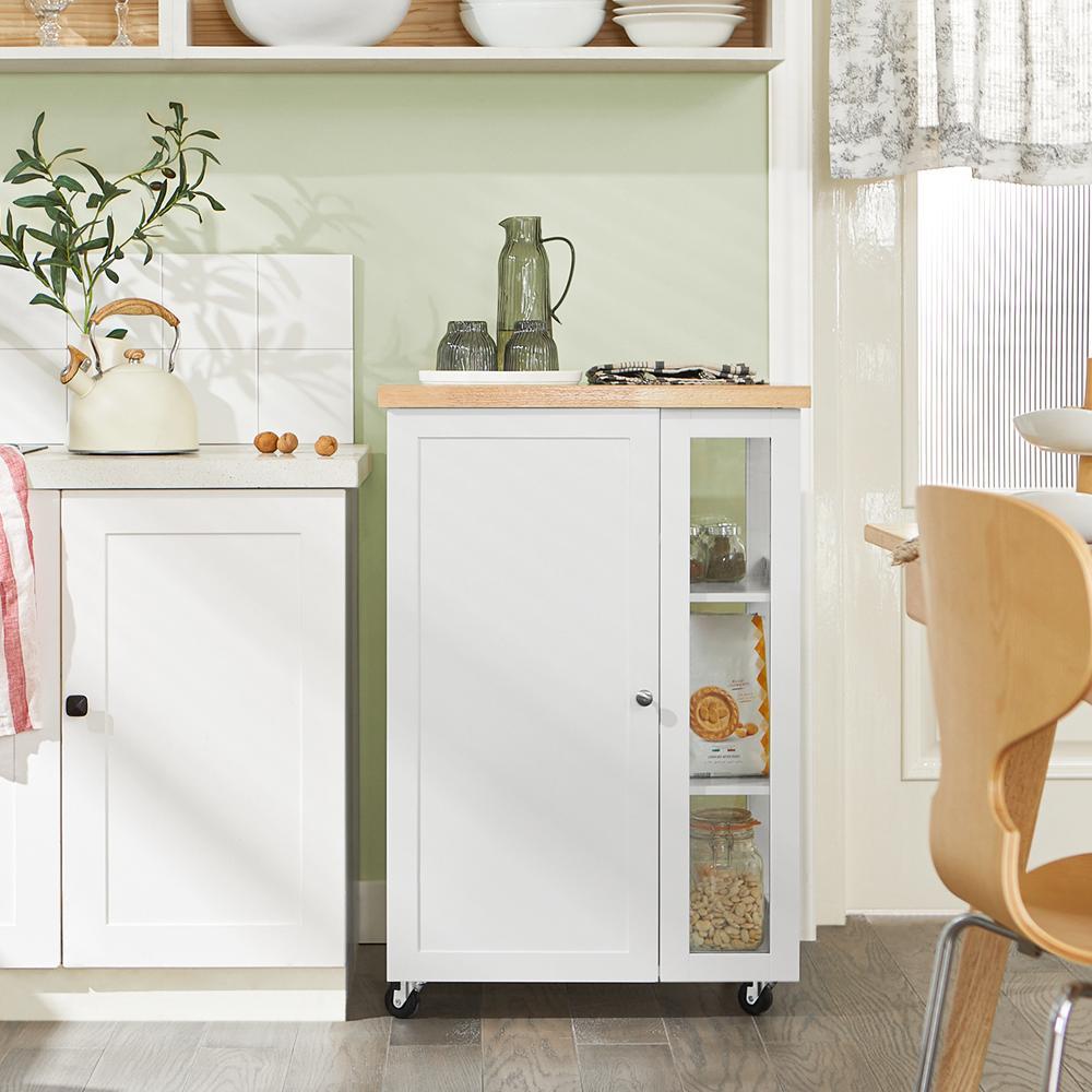 Virtuvinė spinta ant ratų 60x40x90cm., baltos/šviesiai rudos spalvos FKW75-WN