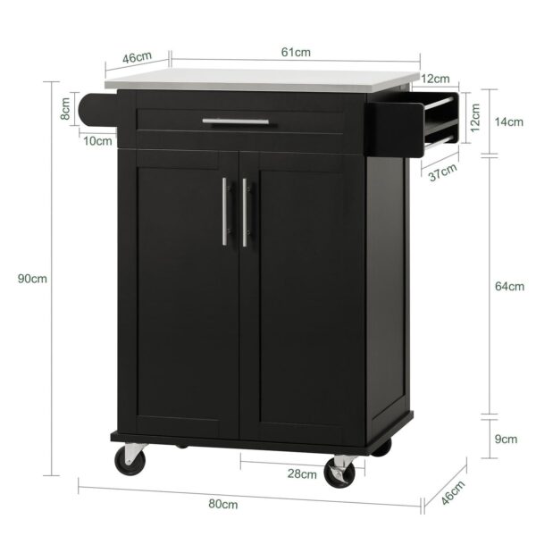 Virtuvinė spinta ant ratų 80x90x46cm., juodos/sidabrinės spalvos FKW110-SCH