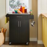 Ši virtuvinė spinta ant ratų yra puikus sprendimas papildomai laikymo, darbastalio ir darbo vietai jūsų virtuvėje. Juodos ir sidabrinės spalvos dizainas suteikia modernumo ir elegancijos jūsų interjerui.