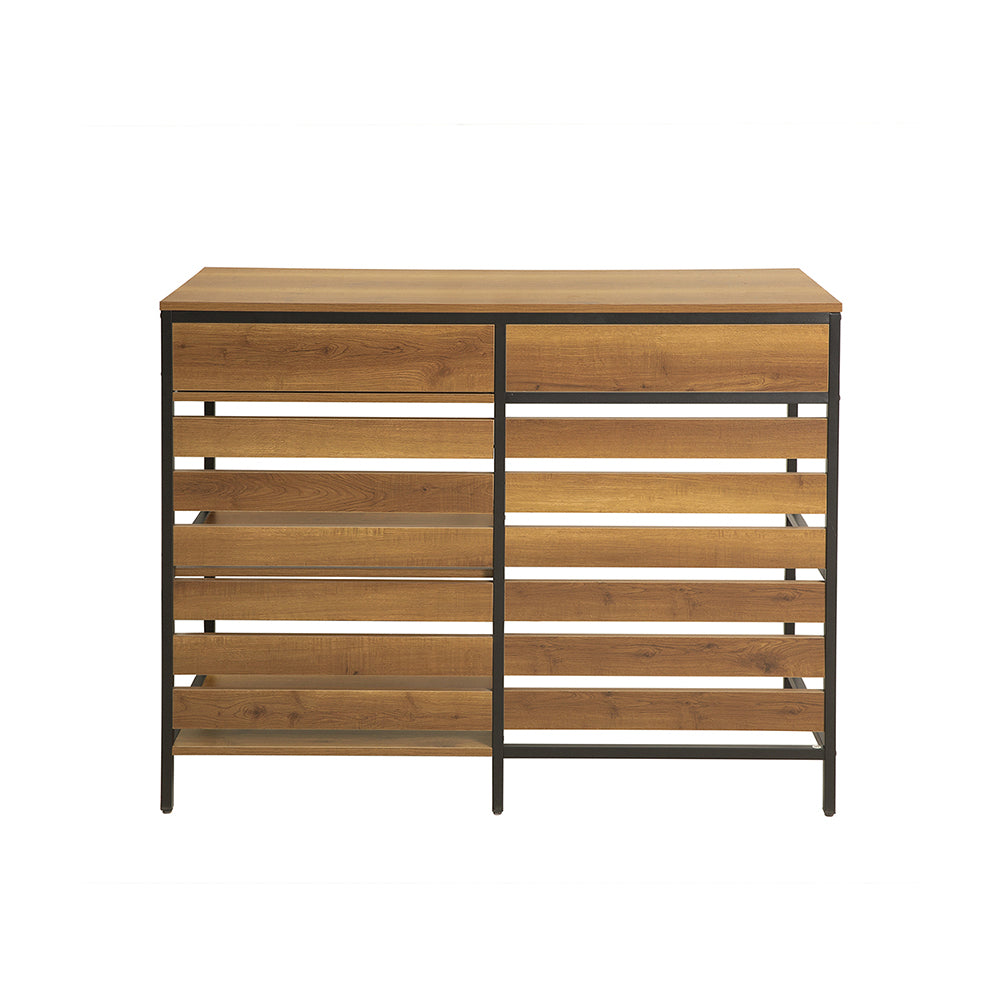 Spintelė pagaminta iš aukštos kokybės medžio drožlių plokštės (PB, E1) ir metalo, užtikrinančių tvirtą ir stabilų rėmą. Bendri matmenys yra 120 cm ilgis, 45 cm plotis ir 90 cm aukštis, o svoris siekia 29,5 kg. Spintelė išbandyta ir gali atlaikyti iki 75 kg apkrovą.