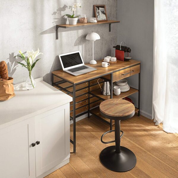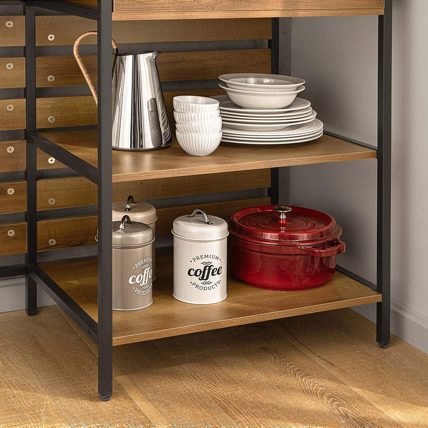 Ši virtuvinė spintelė 120x45x90 cm, rudos ir juodos spalvos, yra puikus pasirinkimas jūsų virtuvei ar valgomajam. Jos klasikinis dizainas ir natūrali medžio spalva suteikia elegancijos ir stiliaus, puikiai derančio prie įvairių interjero stilių.
