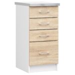 Lima virtuvės spintelė su stalviršiu yra puikus pasiūlymas bet kuriai virtuvei. Baldą sudaro keturi stalčiai – trys mažesni ir vienas didesnis – kuriuose tilps daug kasdieniniam maistui ruošti reikalingų daiktų. Spintelė suprojektuota šiuolaikiškai, naudojant baltą korpusą ir madingo sonomos ąžuolo atspalvio fasadus. Ryškios rankenos puikiai papildo visumą. Baldai pasižymi ne tik akį traukiančiu dizainu, bet visų pirma labai gera kokybe. Jis buvo pagamintas iš aukštos kokybės laminuotos plokštės, kuri yra atspari dilimui, ilgaamžė ir ilgaamžė. Tiek šis, tiek kiti pasiūlymai iš Lima kolekcijos labai tiks didelėms ir mažoms virtuvėms, kurios leis jas funkcionaliai išdėstyti. Korpuso spalva – Balta Priekinė spalva – Sonoma ąžuolas – Korpusas su metaliniais ritininiais kreiptuvais – Spintelė iš trinčiai atsparios laminuotos plokštės – Baltas stalviršis su sidabriniu kraštu NEMOKAMAI !!!