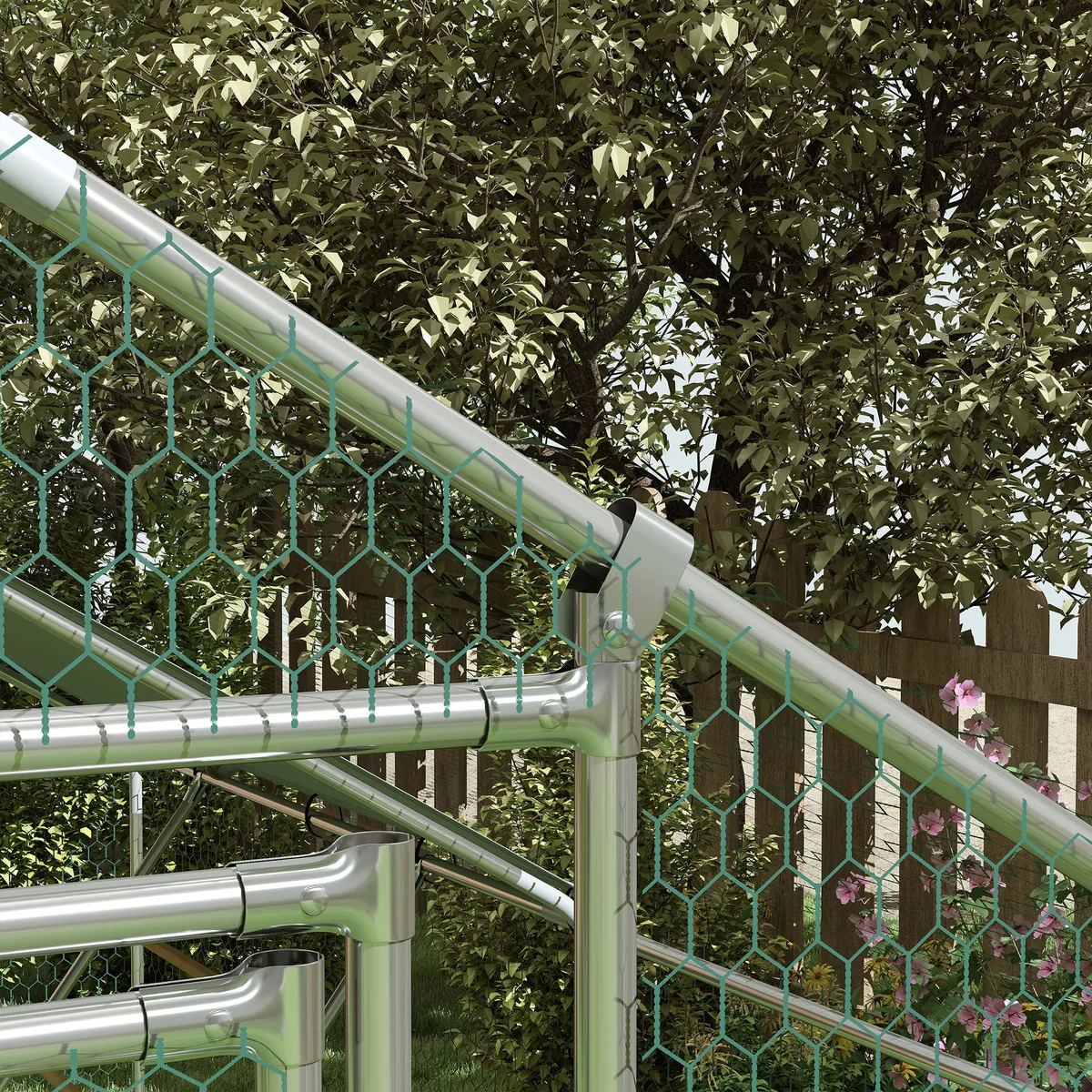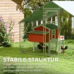 Perplanuokite savo sodą naudodami PawHut laisvai laikomų vištų aikštę – erdvią 6 m² tvartą 6–8 viščiukams. Pagamintas iš cinkuoto plieno ir UV spinduliams atsparaus Oksfordo audinio, jis garantuoja saugią ir patogią vietą jūsų plunksnuotiems draugams. Inovatyvios laisvo laikymo aptvaro durys su įmontuota šėrimo prieiga palengvina viščiukų priežiūrą, o konstrukcija suteikia pakankamai erdvės žaisti, bėgioti ir ilsėtis.