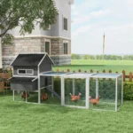 - Erdvus dizainas: yra pakeltas vištienos narvas su dviem trigubomis lizdavietėmis ir erdvi greta esanti aikštelė. Šioje erdvioje vištidėje gali tilpti nuo 8 iki 10 viščiukų, atsižvelgiant į jų dydį ir veislę.