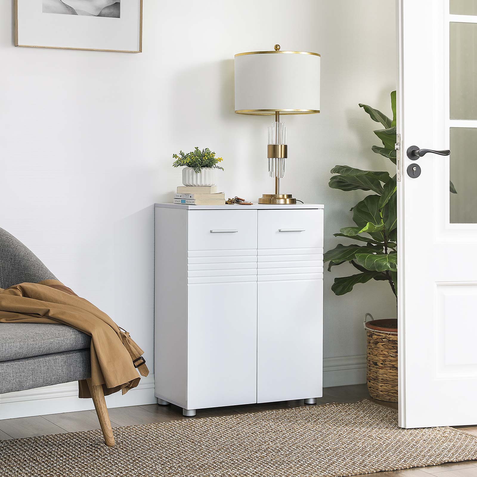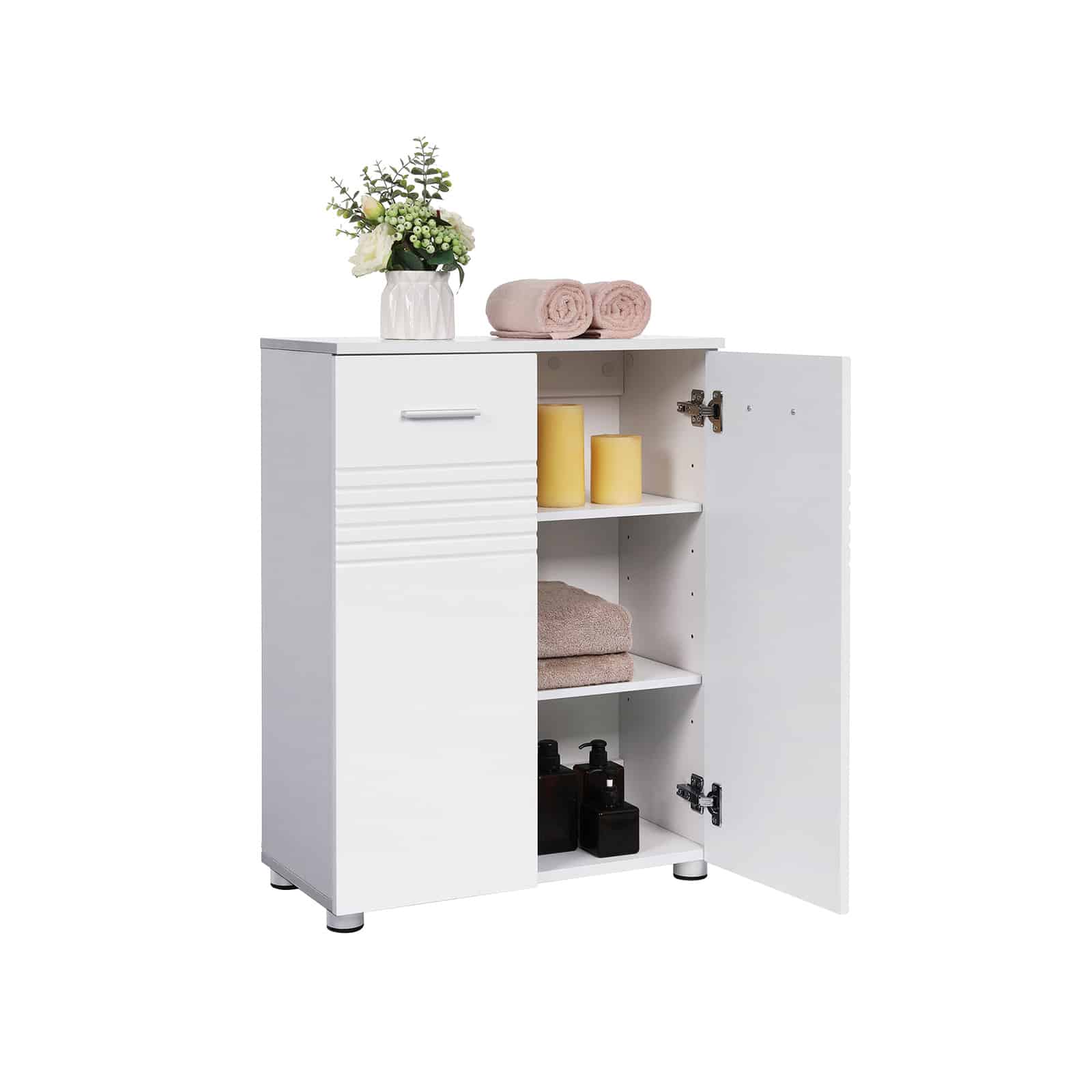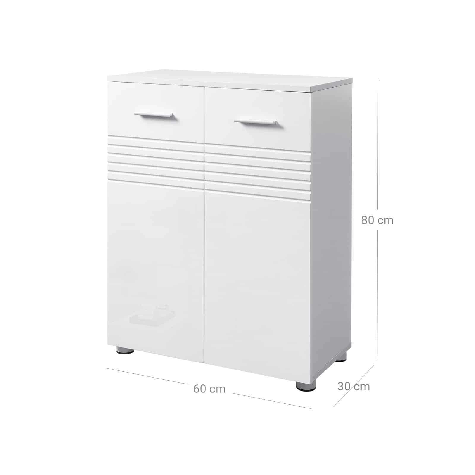 Nors pirmiausia skirta vonios kambariams, ši spintelė su melaminu dengta medžio drožlių plokšte ir blizgiomis PVC dengtomis medžio dulkių plokštė (MDF) durelėmis puikiai tinka ir virtuvės, įėjimo zonos ar svetainės interjerui. Suteikite savo vonios kambariui prasmę, kurios jis nusipelnė, naudodami VASAGLE vonios kambario baldus! Taigi pažvelkite į šios indaujos „seseris ir brolius”, kad sukurtumėte puikiai suderintą vonios kambarį.