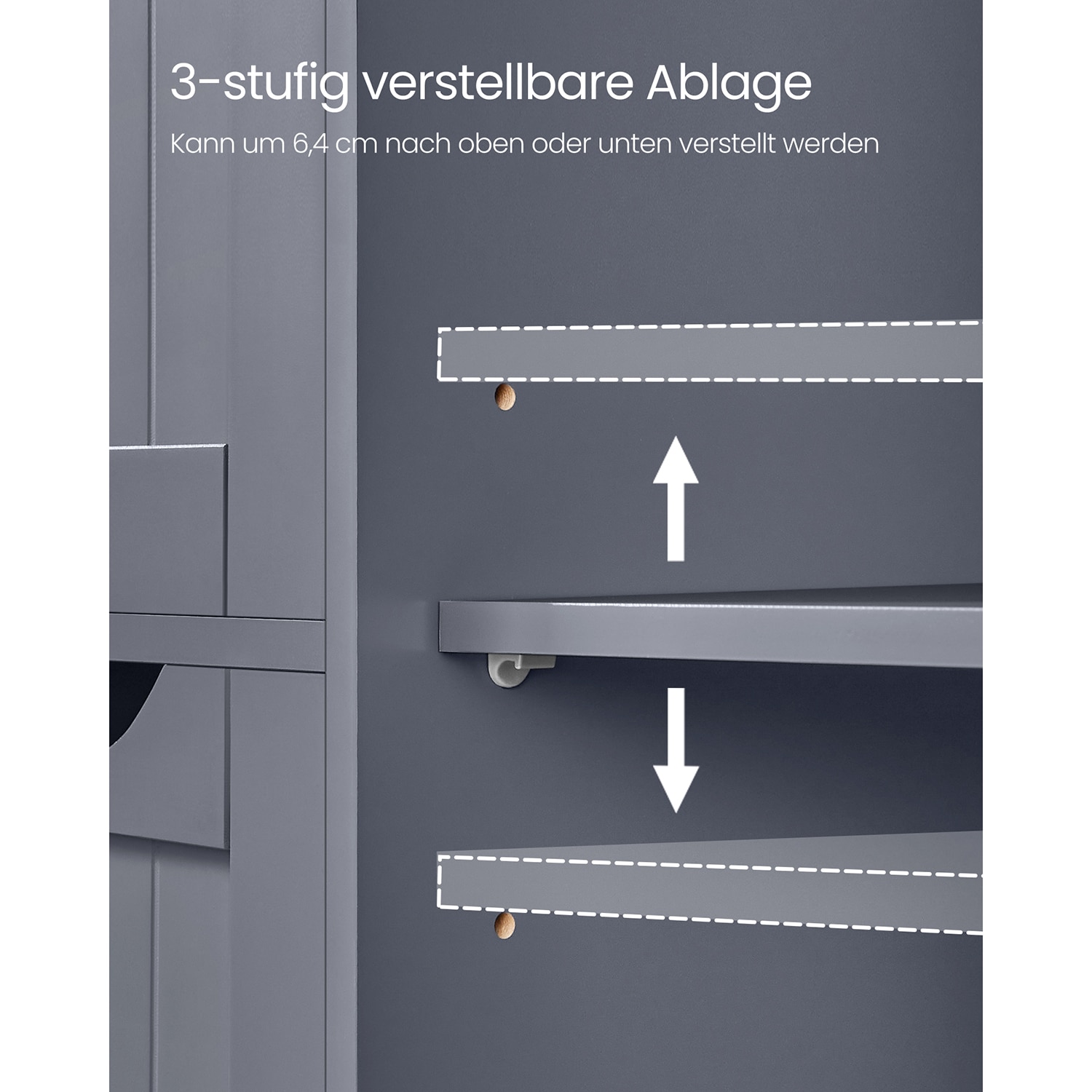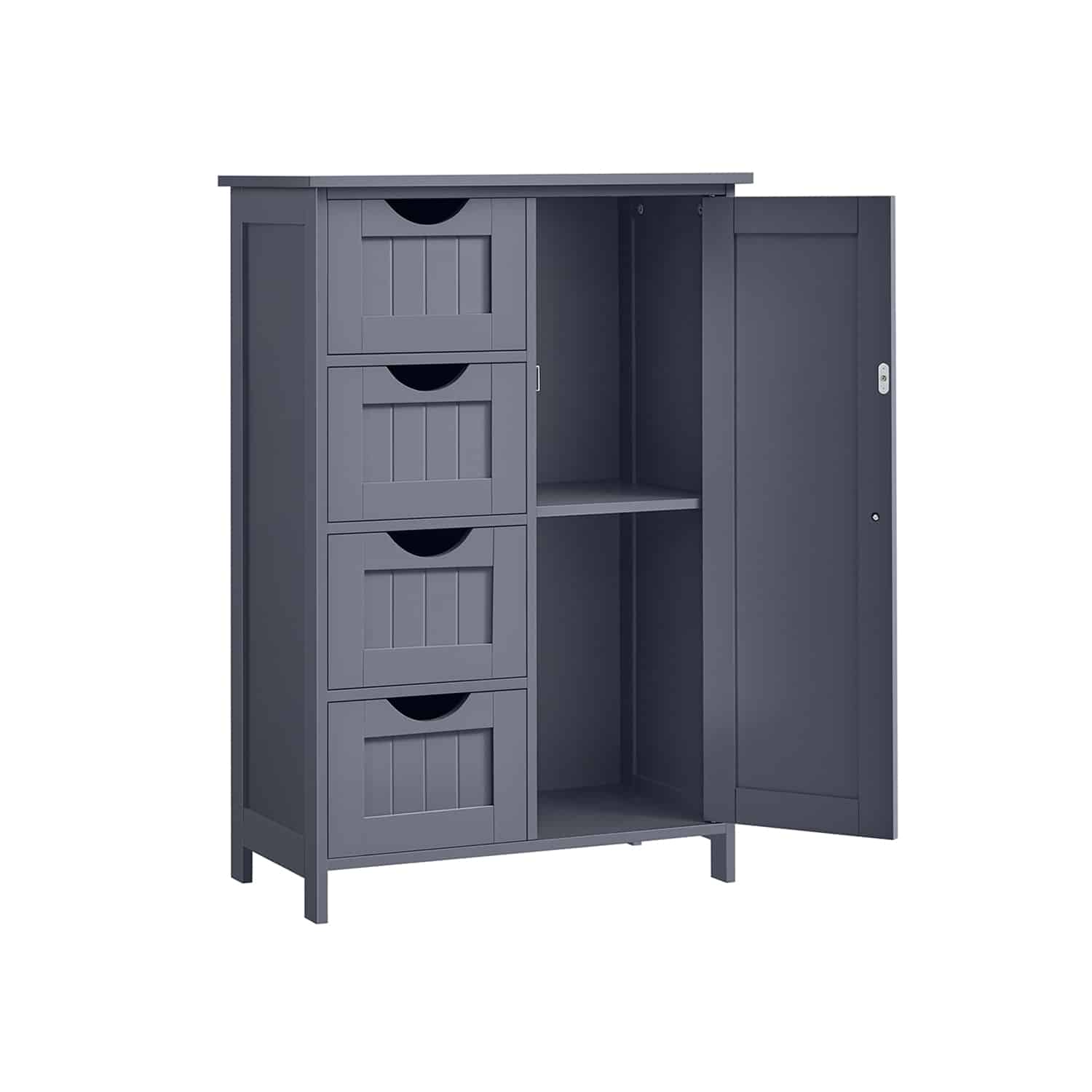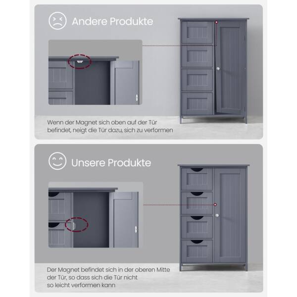 Ši tamsiai pilkos spalvos vonios kambario spintelė yra puikus pasirinkimas, siekiant sukurti tvarkingą ir stilingą vonios kambario interjerą. Pagaminta iš aukštos kokybės medžio dulkių plokštė (MDF) (vidutinio tankio medienos plaušų plokštės), ši spintelė yra patvari ir ilgaamžė.