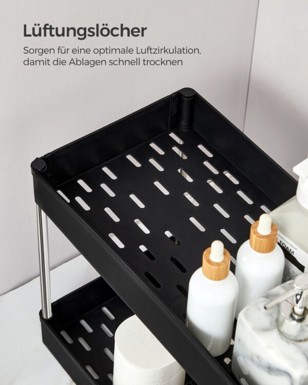 Ši vonios lentyna yra pagaminta iš aukštos kokybės medžiagų, užtikrinančių ilgaamžiškumą ir atsparumą drėgmei. Juodos ir sidabrinės spalvos derinys suteikia modernumo ir elegancijos, todėl ji puikiai tiks tiek klasikiniam, tiek šiuolaikiniam interjerui.