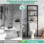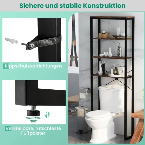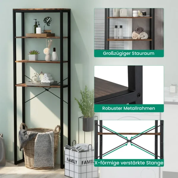 - Laisvai pastatoma vonios lentyna su 4 pakopų saugojimo vietomis suteikia pakankamai vietos vonios reikmenims.