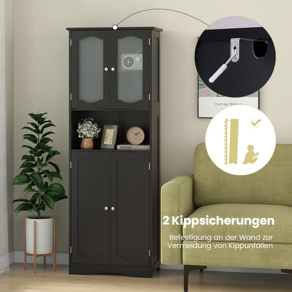 - Įtaisai apsaugai nuo lentynos apsivertimo užtikrina saugumą namuose su vaikais ir augintiniais.