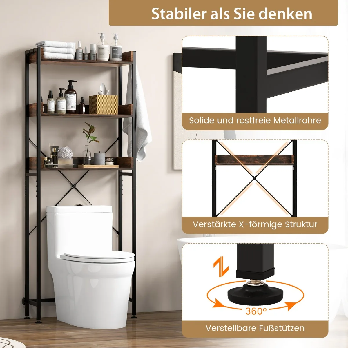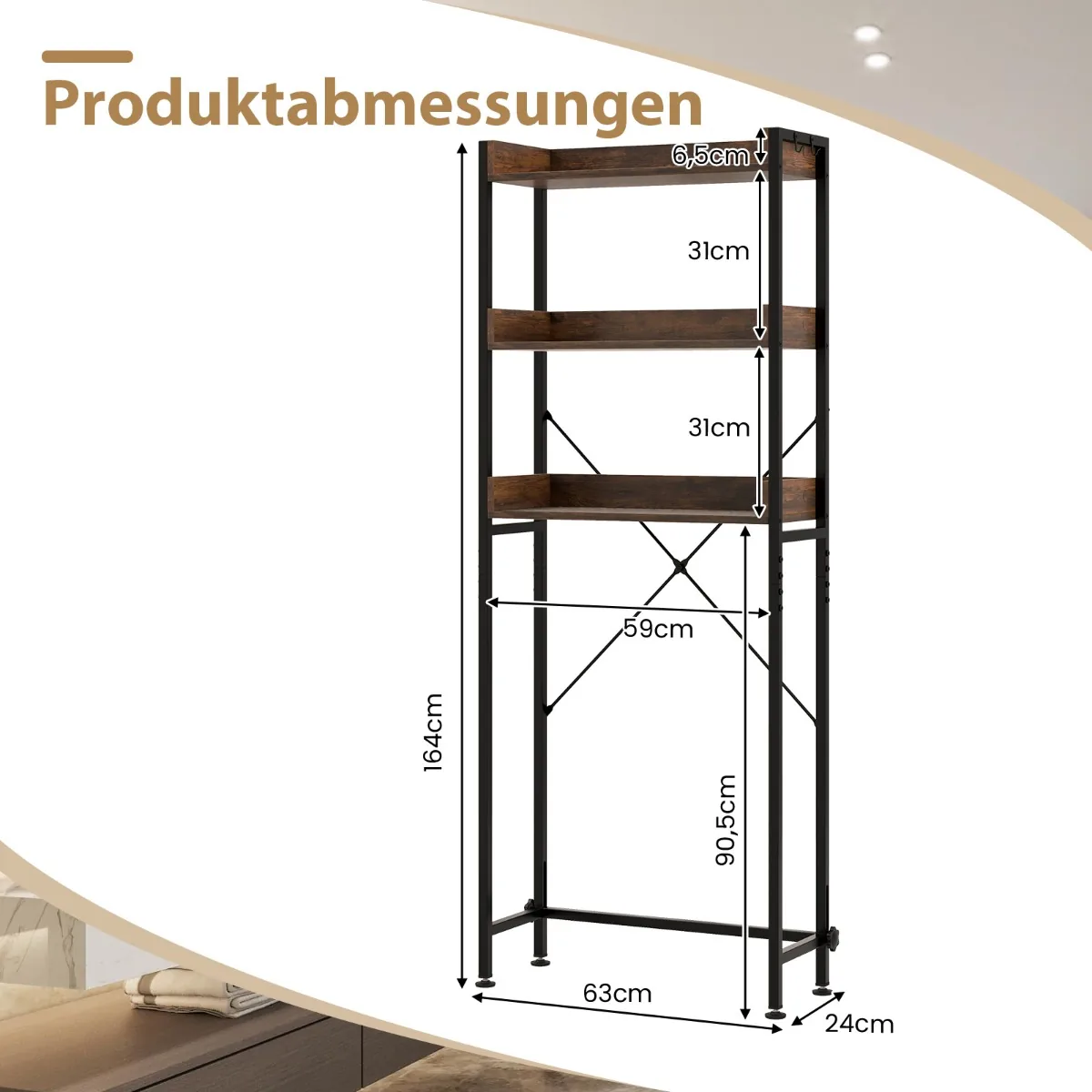 Vonios lentyna 63x24x164cm, rudos spalvos, yra praktiškas sprendimas norint efektyviai išnaudoti vietą vonios kambaryje. Ši lentyna virš unitazo suteikia papildomos vietos vonios reikmenims, rankšluosčiams ir kitiems daiktams, palaikant tvarką ir patogumą.