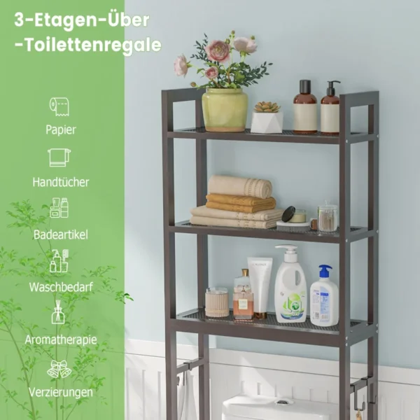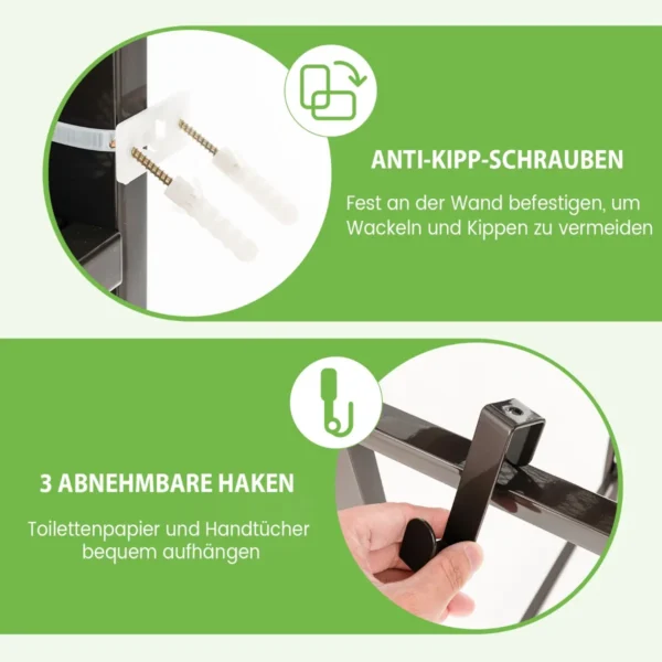 Vonios lentyna 63×26,5×170 cm rudos spalvos – praktiškas sprendimas vonios kambario erdvės tvarkai palaikyti. Ši metalinė vonios spintelė suteikia pakankamai vietos popieriui, tualeto reikmenims, kosmetikai ir rankšluosčiams, leidžianti efektyviai organizuoti vonios kambarį ar tualetą.