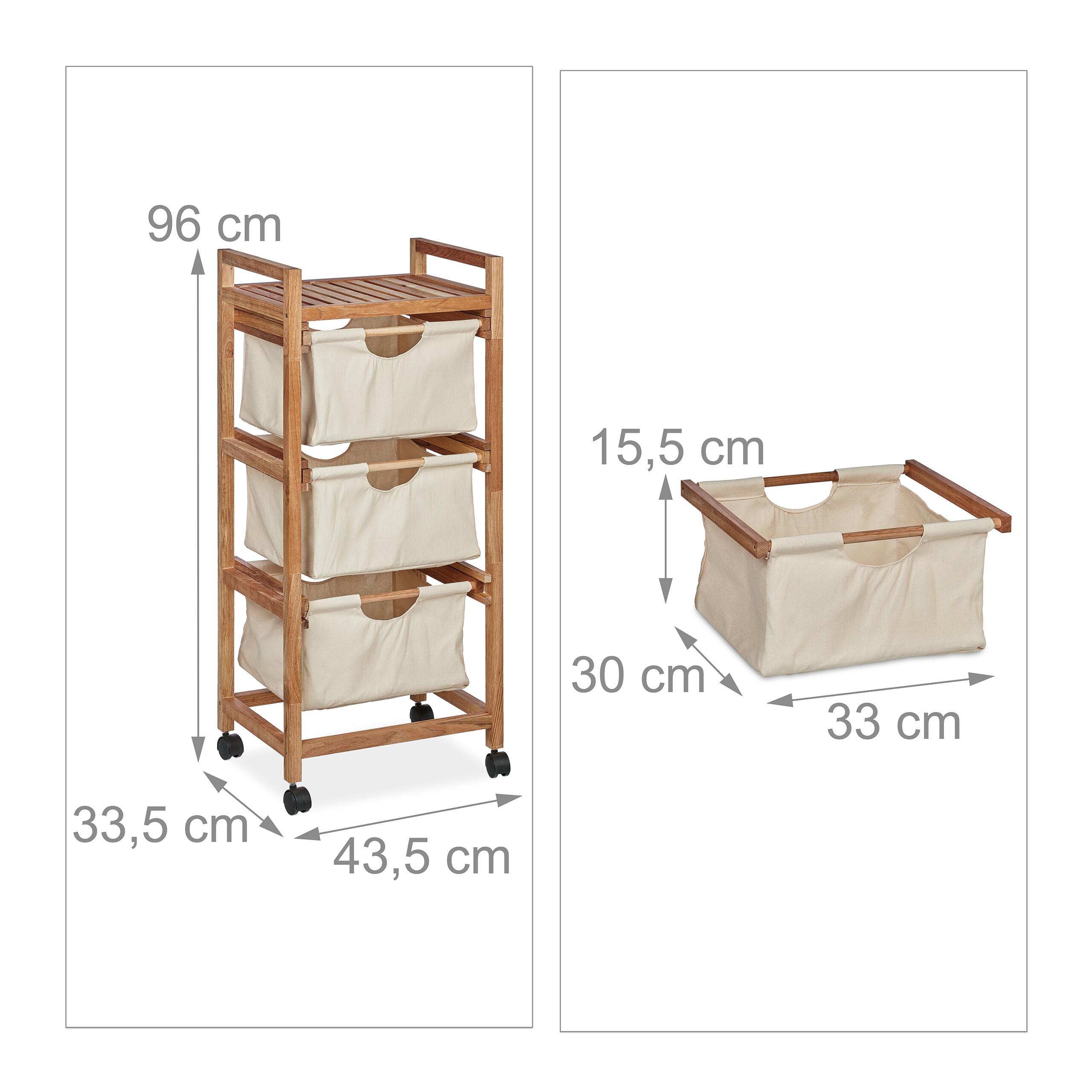- Medžiaga: Graikinio riešutmedžio mediena su medžiaginiais krepšeliais